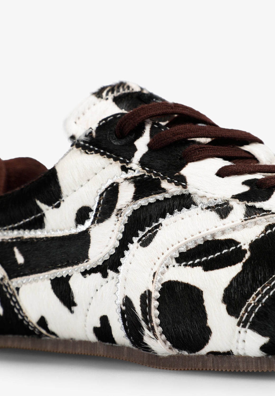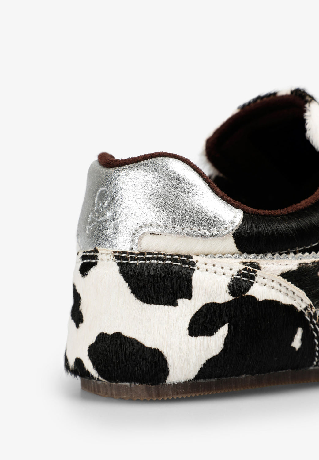 Sneakers made of a cowhide leather blend. Durable rubber sole and versatile design. Contrast heel with engraved skull. Contrasting designs.