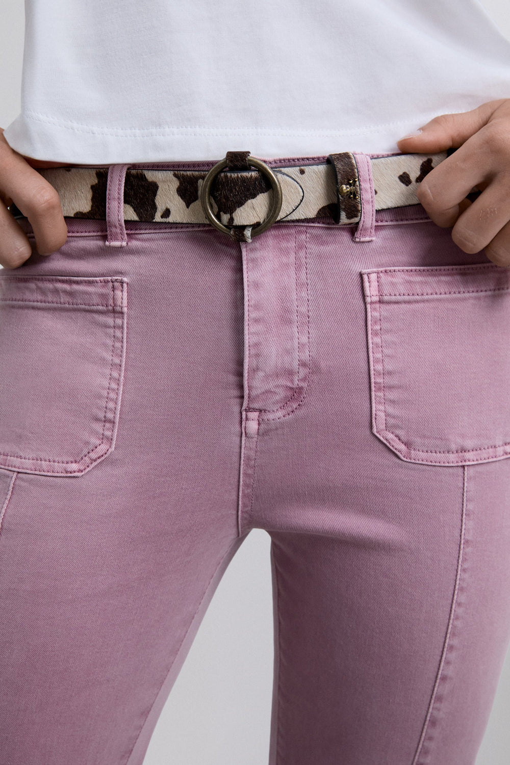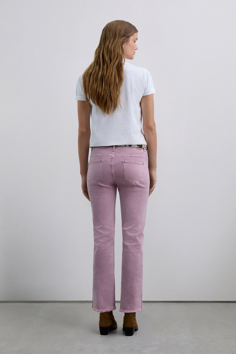Flared trousers made of BCI cotton. Button and zip fastening. Belt loops at the waist. Front and back pockets. Seam detail on the front. Side slit and frayed hems.