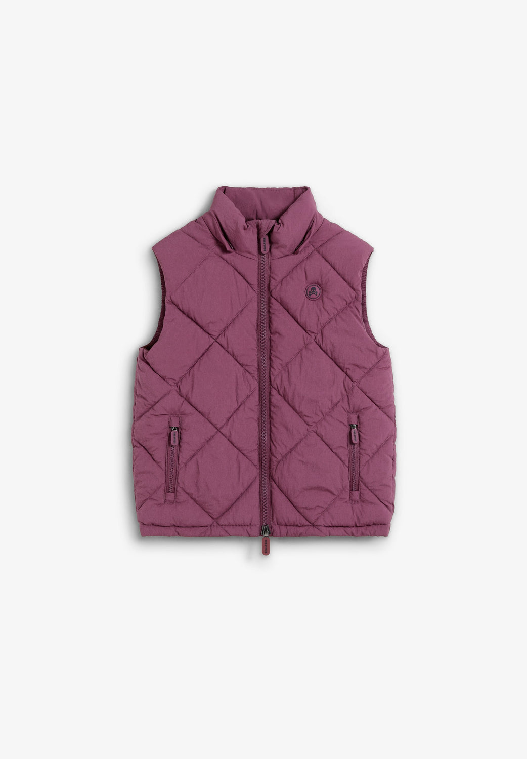 Heavy-duty padded waistcoat with adjustable hood. Double slider zip fastening. Rubberised skull detail on chest. Zip pockets and an inner pocket