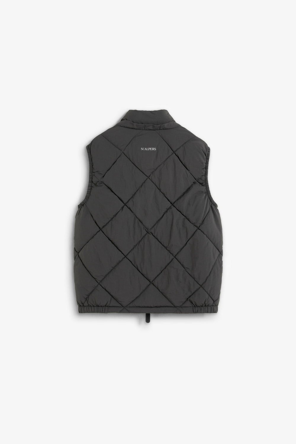 Heavy-duty padded waistcoat with adjustable hood. Double slider zip fastening. Rubberised skull detail on chest. Zip pockets and an inner pocket