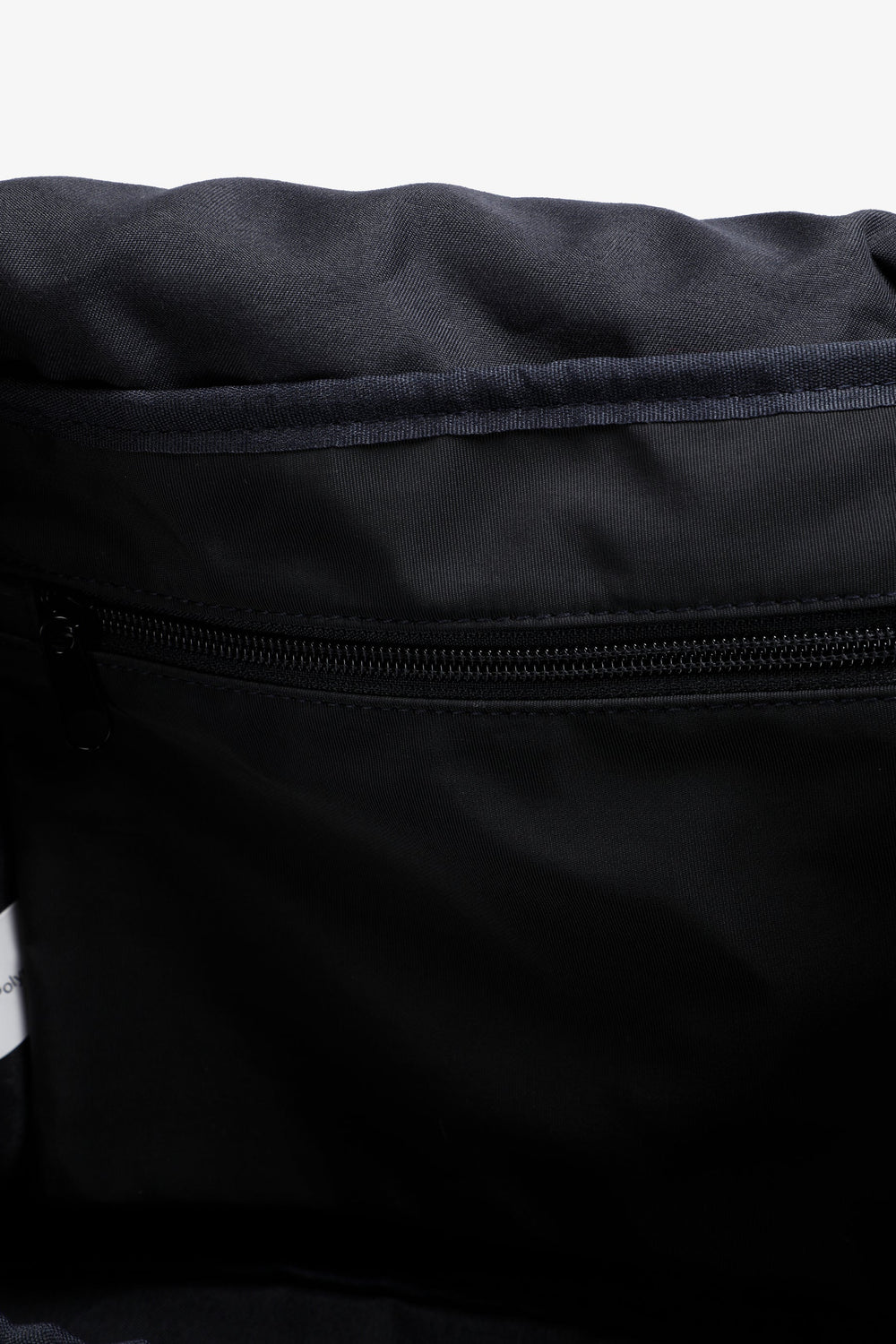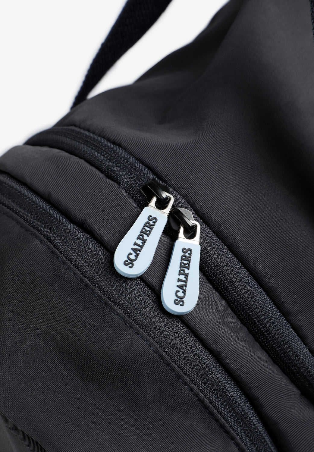 Bag made of a technical fabric. Main compartment with zip closure. One side pocket with zip. Short main shoulder strap and long detachable strap. Front logo and skull print. Logo detail on zip.