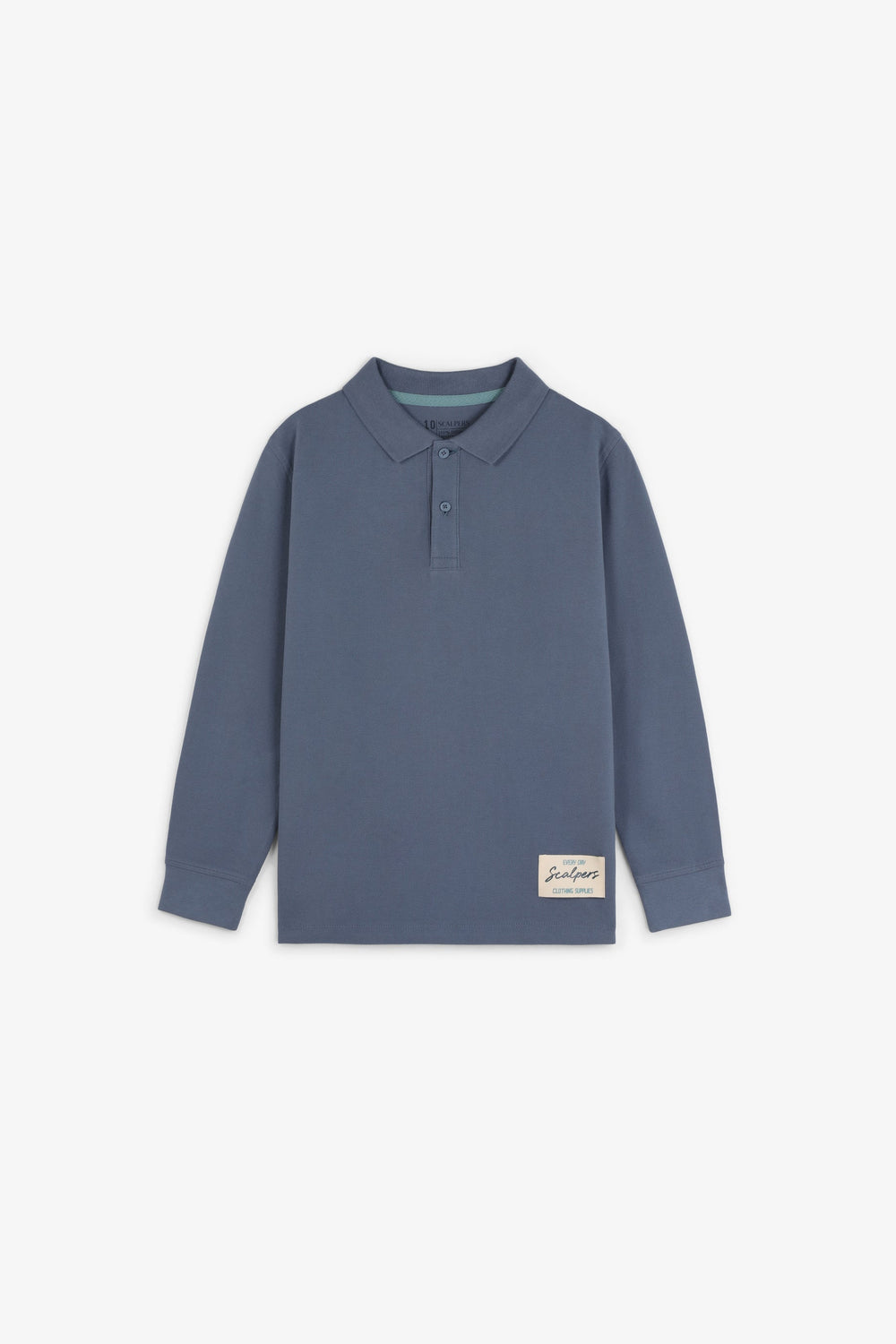 Polo confeccionada en 100% algodón BCI. Regular Fit. Manga larga. Cuello clásico con botones. Logo bordado en espalda y print con calavera. Detalle de parche bordado frontal inferior.