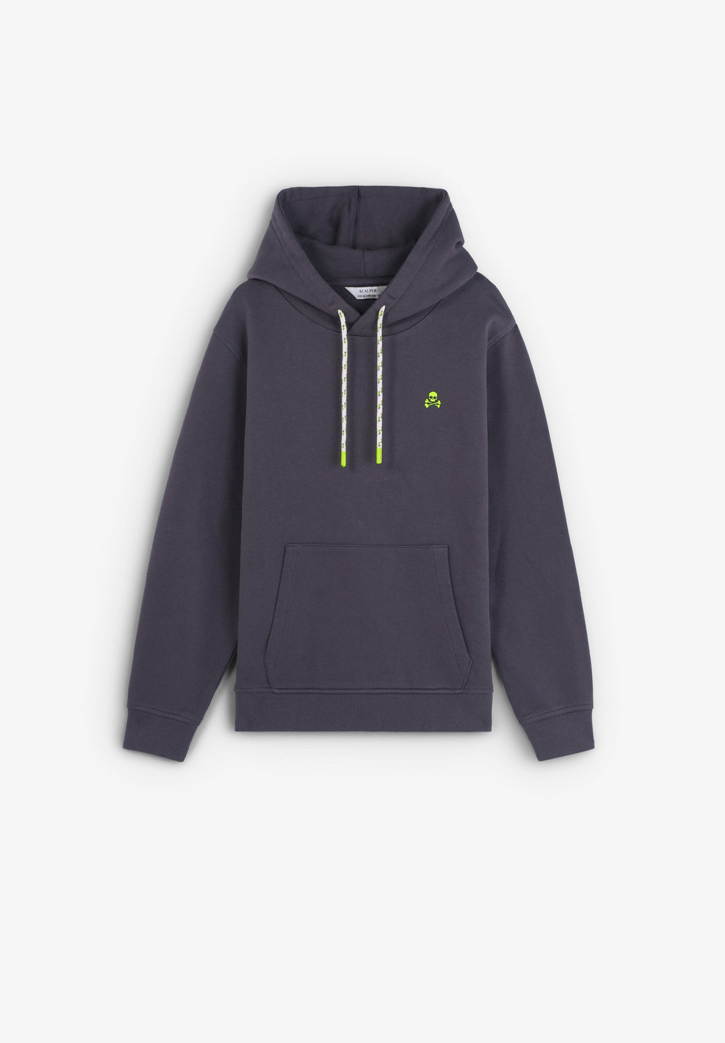 Sweatshirt made of 100% BCI cotton. Regular fit. Collar with adjustable hood. Long sleeves. Pouch pocket Contrast skull print. Ribbed trim.