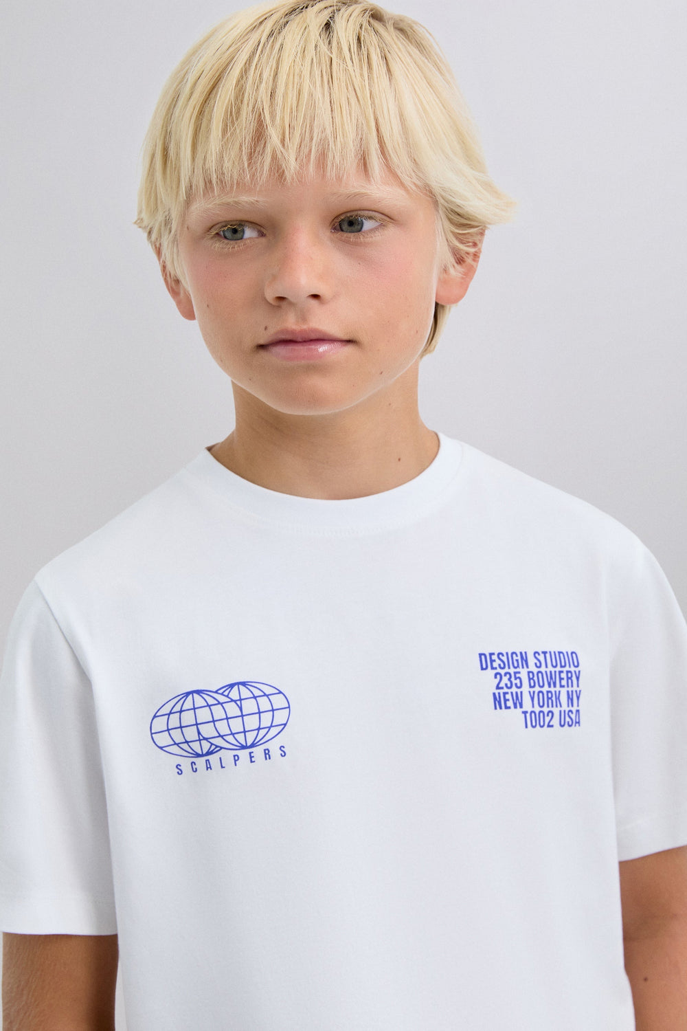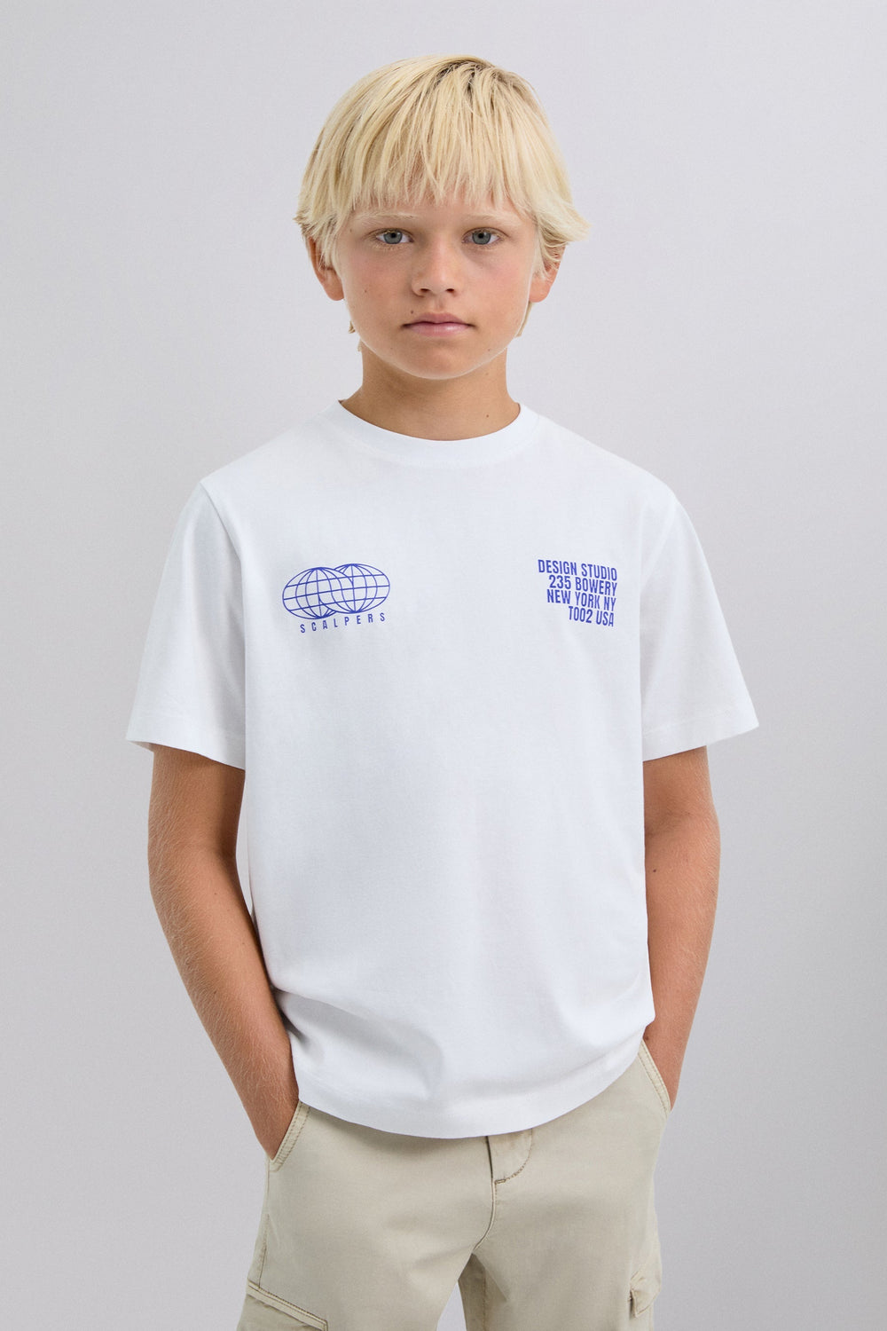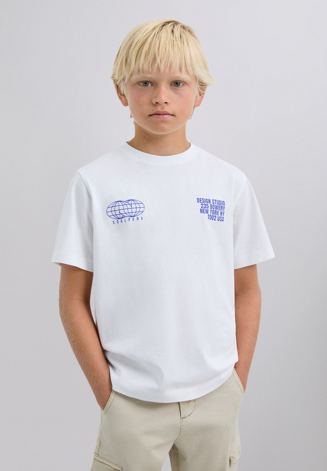 Camiseta confeccionada en algodón 100% orgánico. Corte regular fit, cuello redondo y manga corta. Print trasero y delantero con logo.