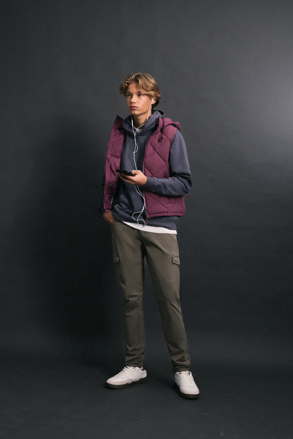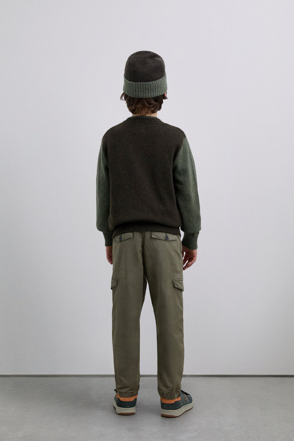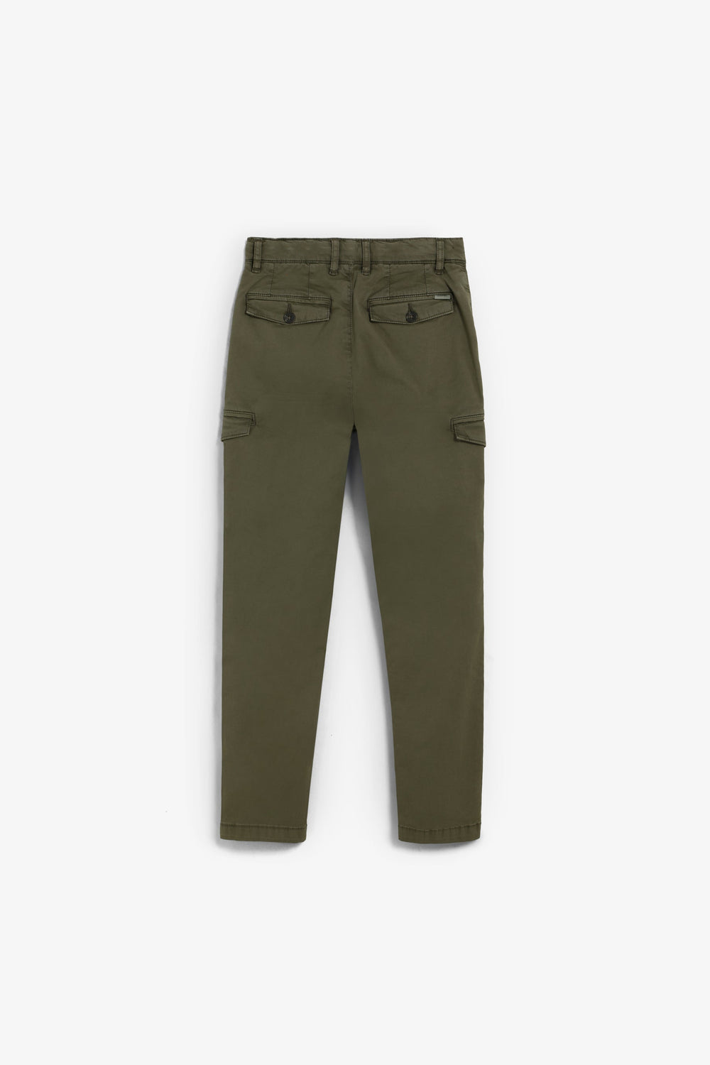 Cargo trousers made of slightly stretch BCI cotton. Regular fit, top button and zip fastening and side pockets. Belt loops at the waist and flap pockets on the leg.