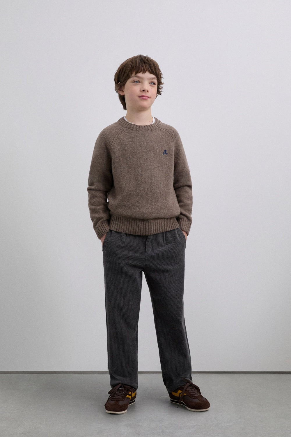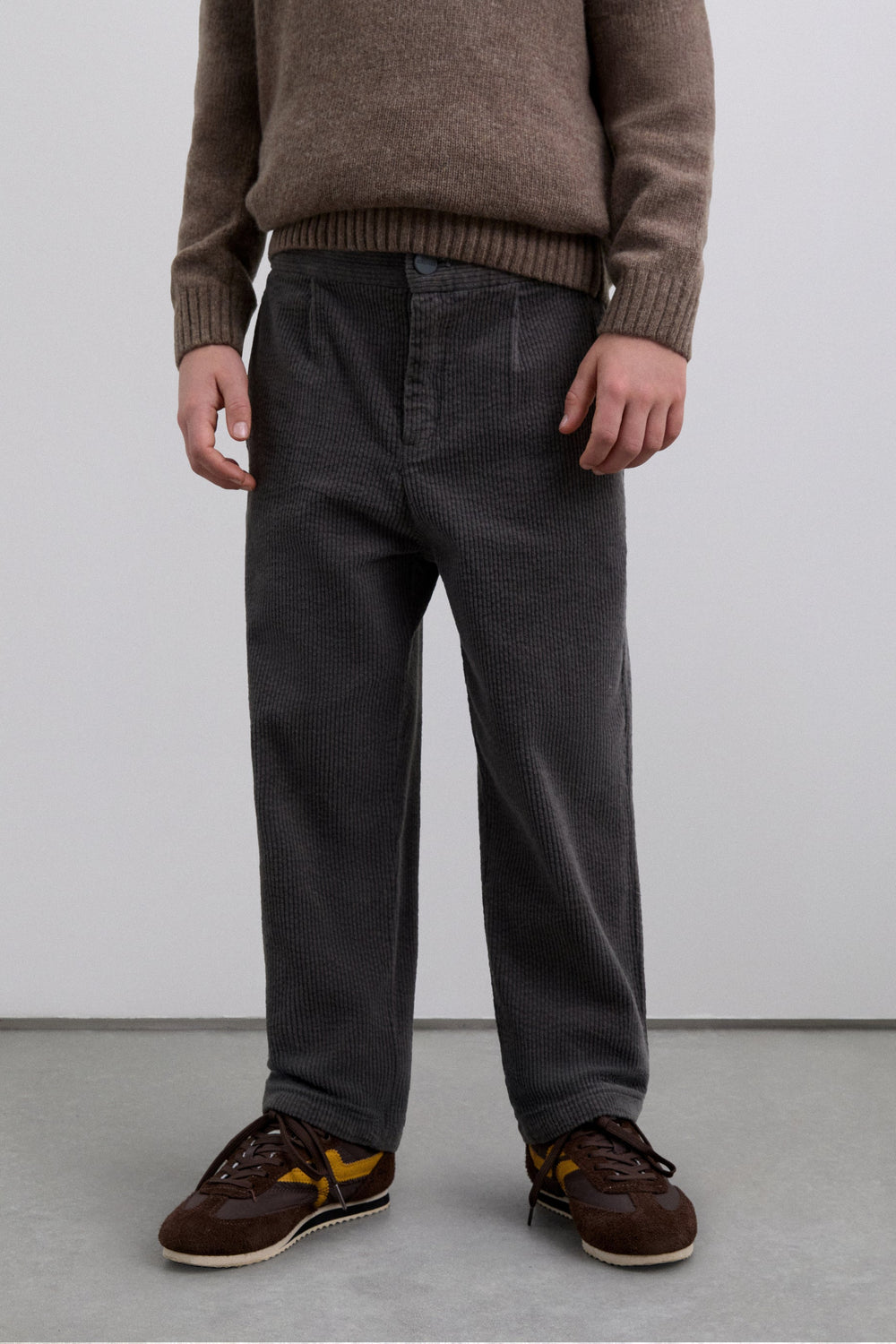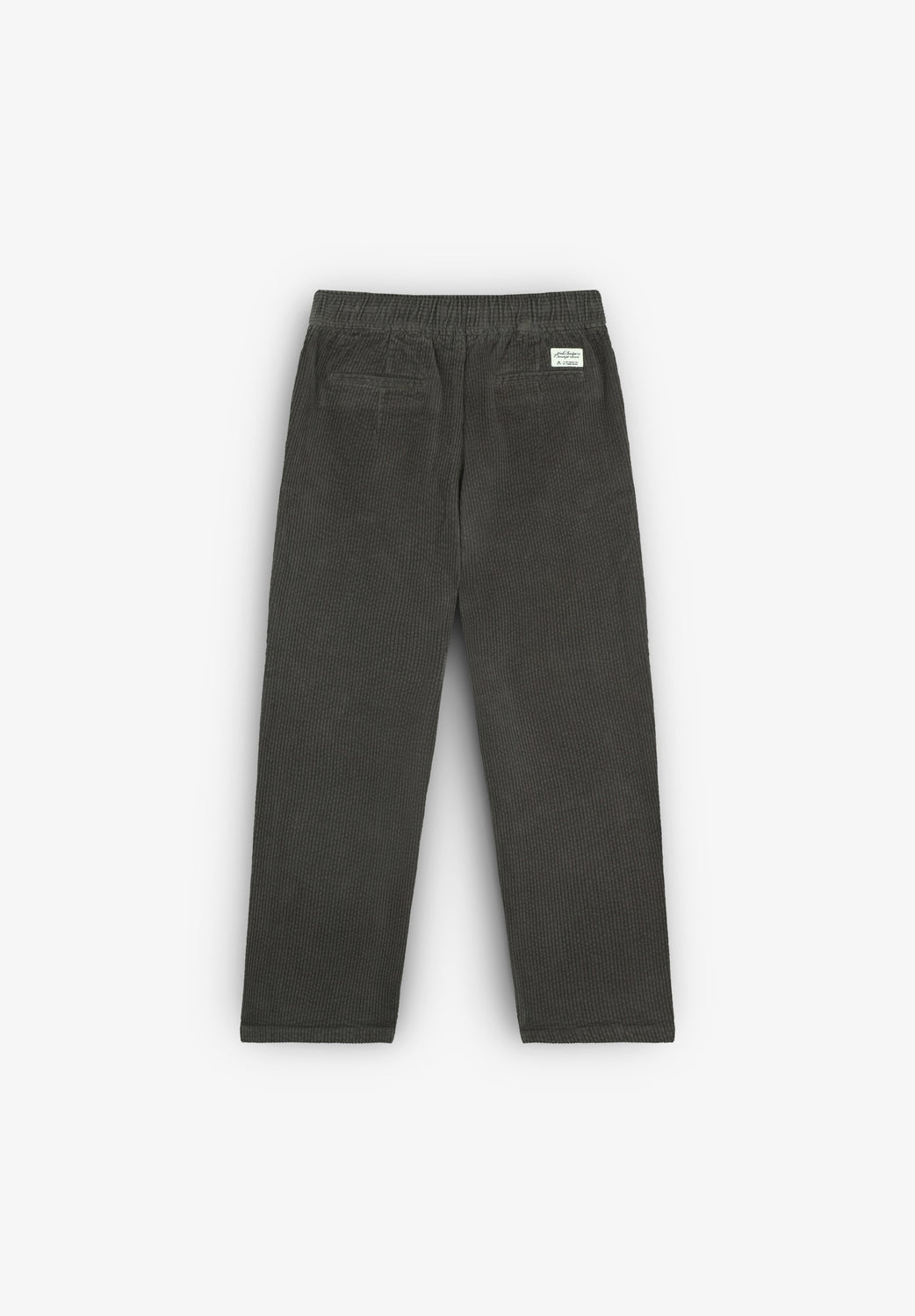 Straight corduroy trousers made of a slightly stretch cotton blend fabric Button closure. Front and back slanted pockets. Back label detail with logo.