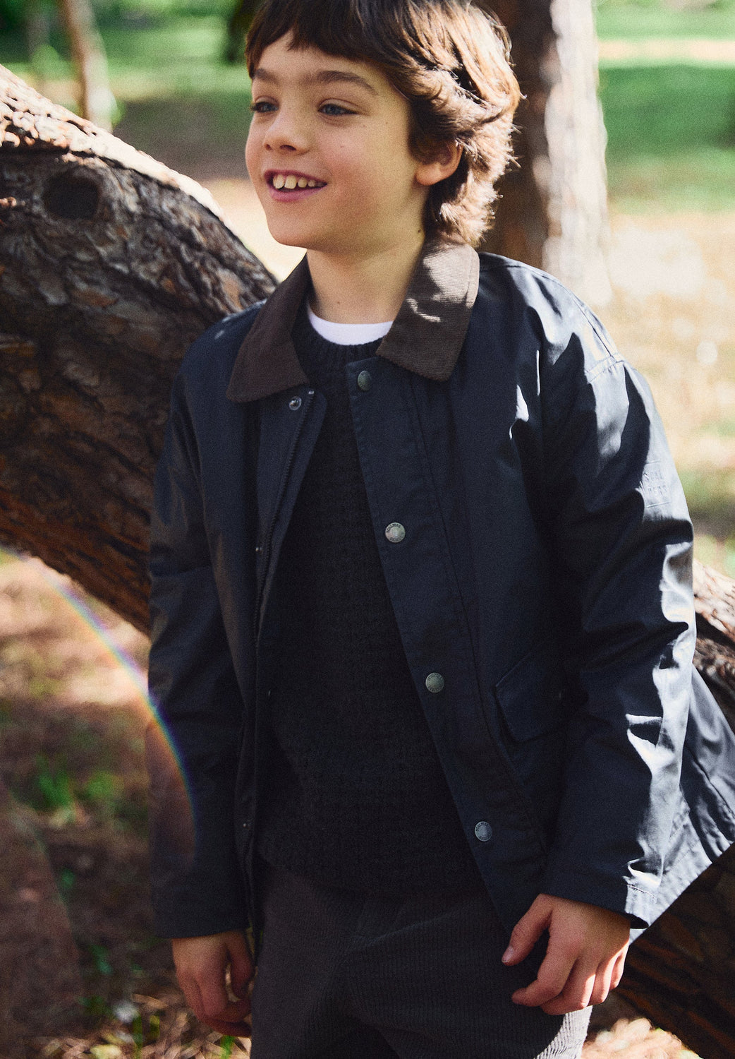 Jacket made of a technical fabric. Contrast shirt collar. Regular Fit. Button fastening. Front button-up pockets. Long sleeves.