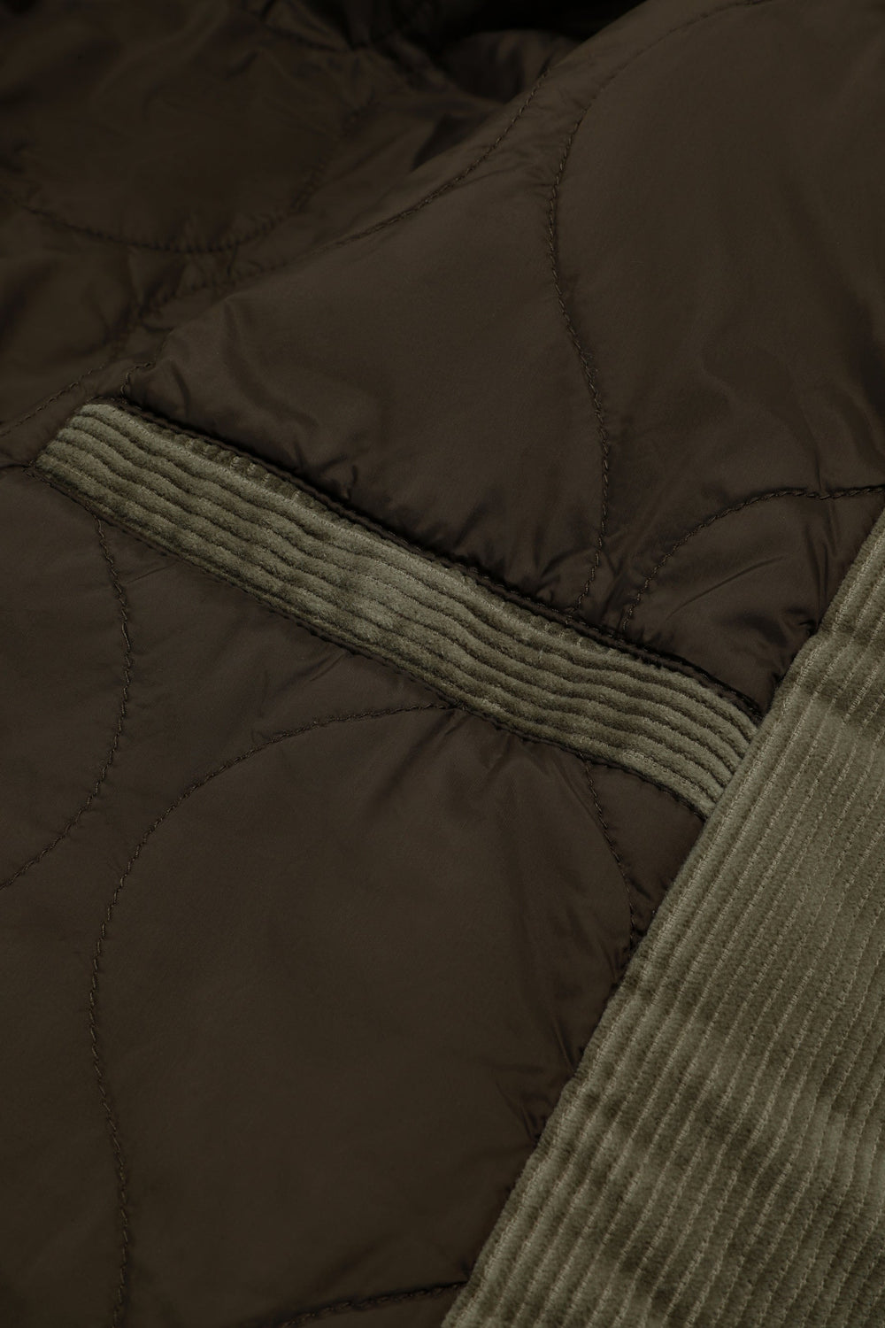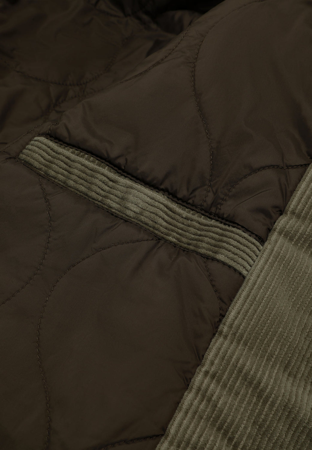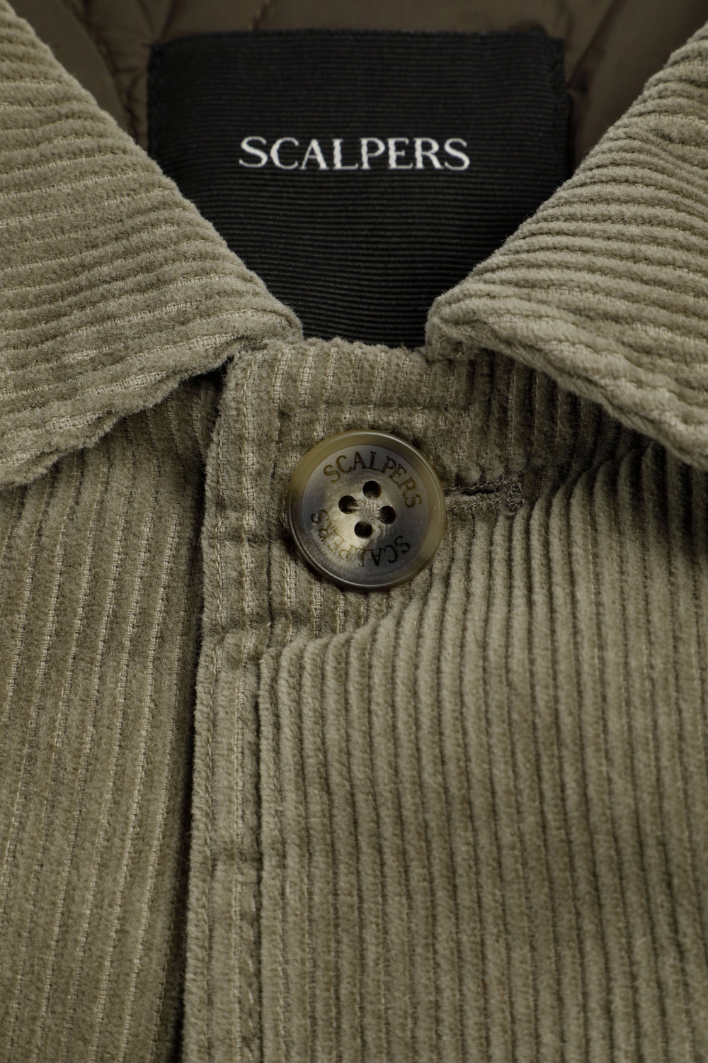 Corduroy bomber jacket made of 100% BCI cotton. Front button fastening. Double front pockets with button fastening. Ribbed cuffs and waistband. Matching embroidered logo detail on the chest.