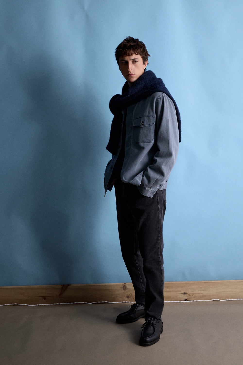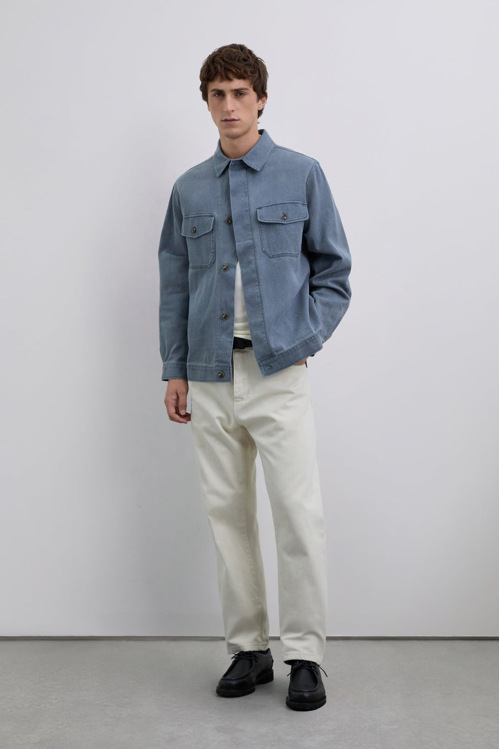 Jacket made of recycled cotton. Faded effect. Two flap pockets on the chest with button fastening. Front button fastening.
