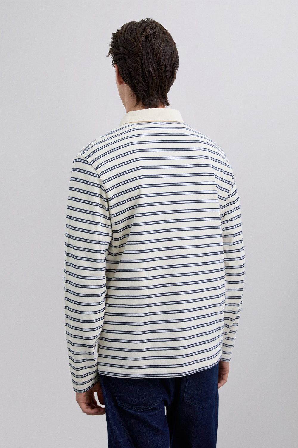 Polo shirt made of knitted 100% BCI cotton. Relaxed fit. Long sleeves. Contrast twill collar. Four-button fastening with concealed placket.