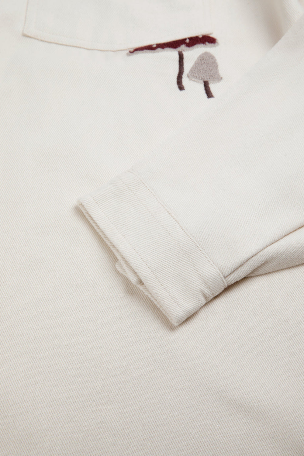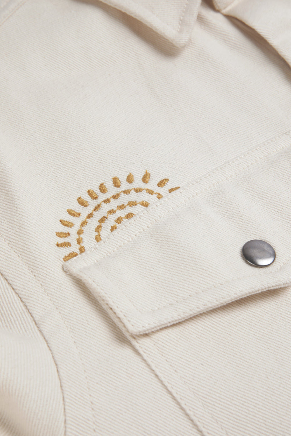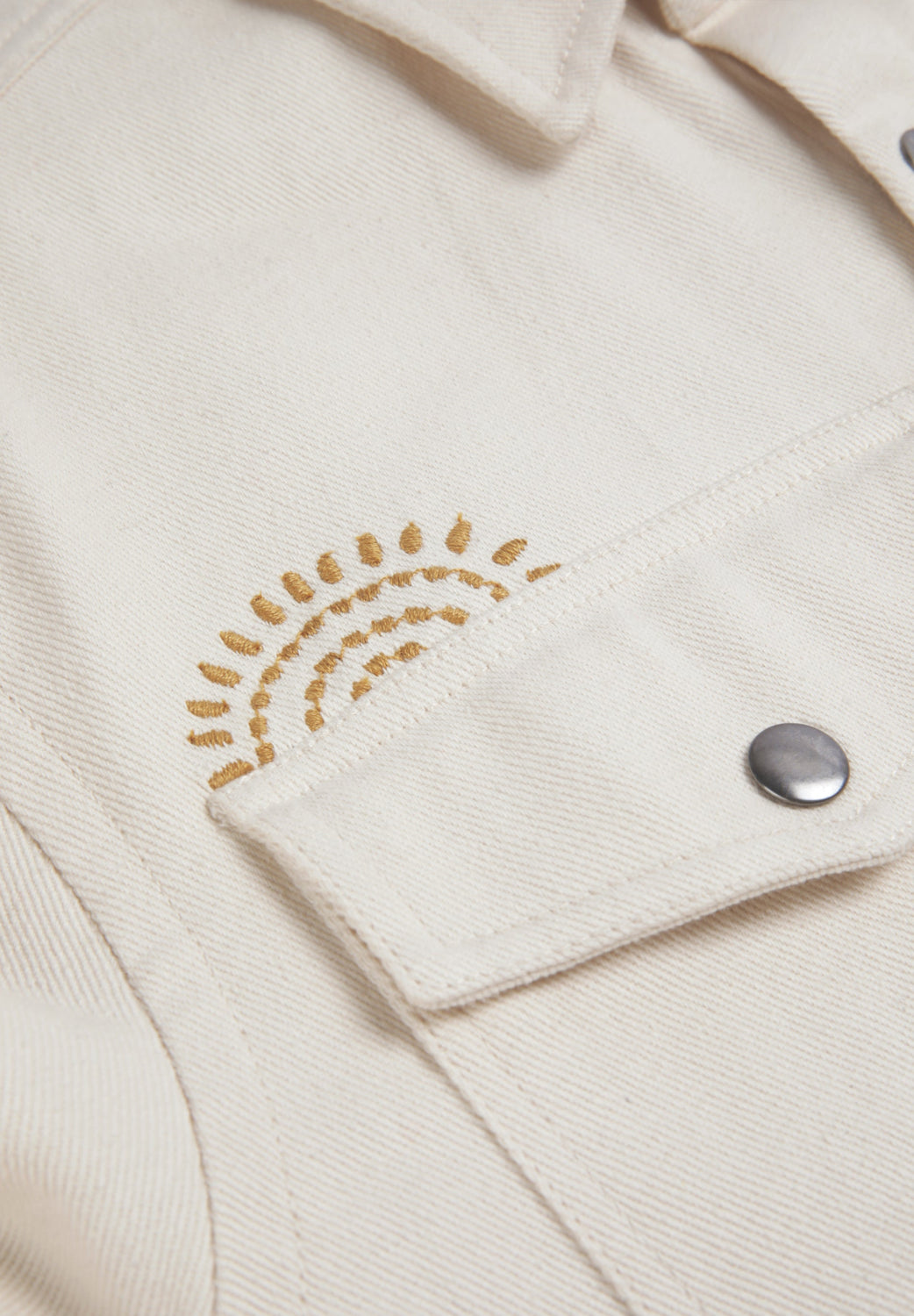 Jacket made of 100% BCI cotton. Regular fit, classic collar and snap-button fastening. Long sleeves with cuffs and pockets with flaps and snap buttons. Embroidered details.