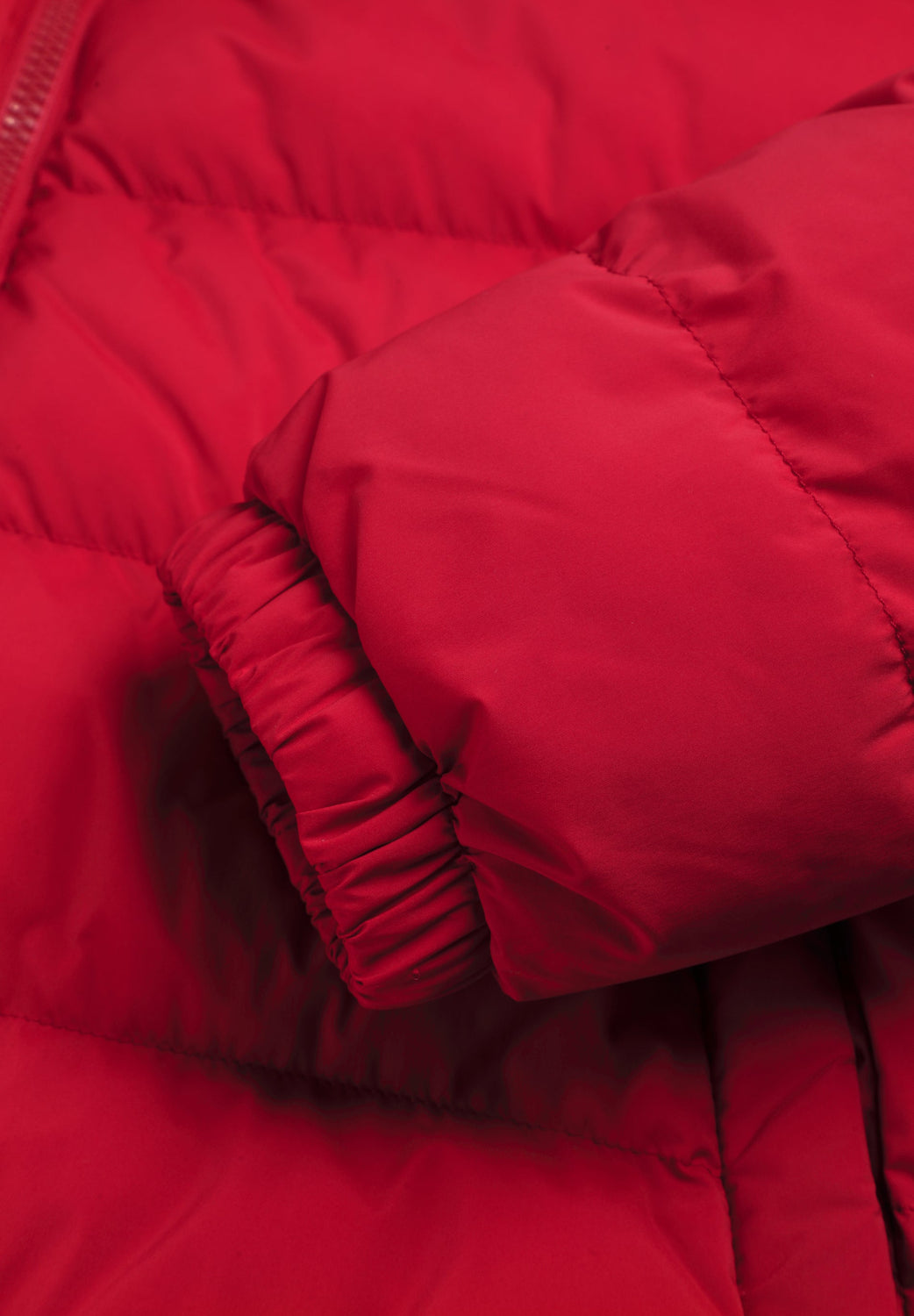 Padded jacket with skull detail on the arm. Two front pockets. Front zip fastening with customised pull. Customised aglets on the hood. Adjustable cuffs and hem. Thermolite filling. Detachable hood. Lining with diamond quilted detail.