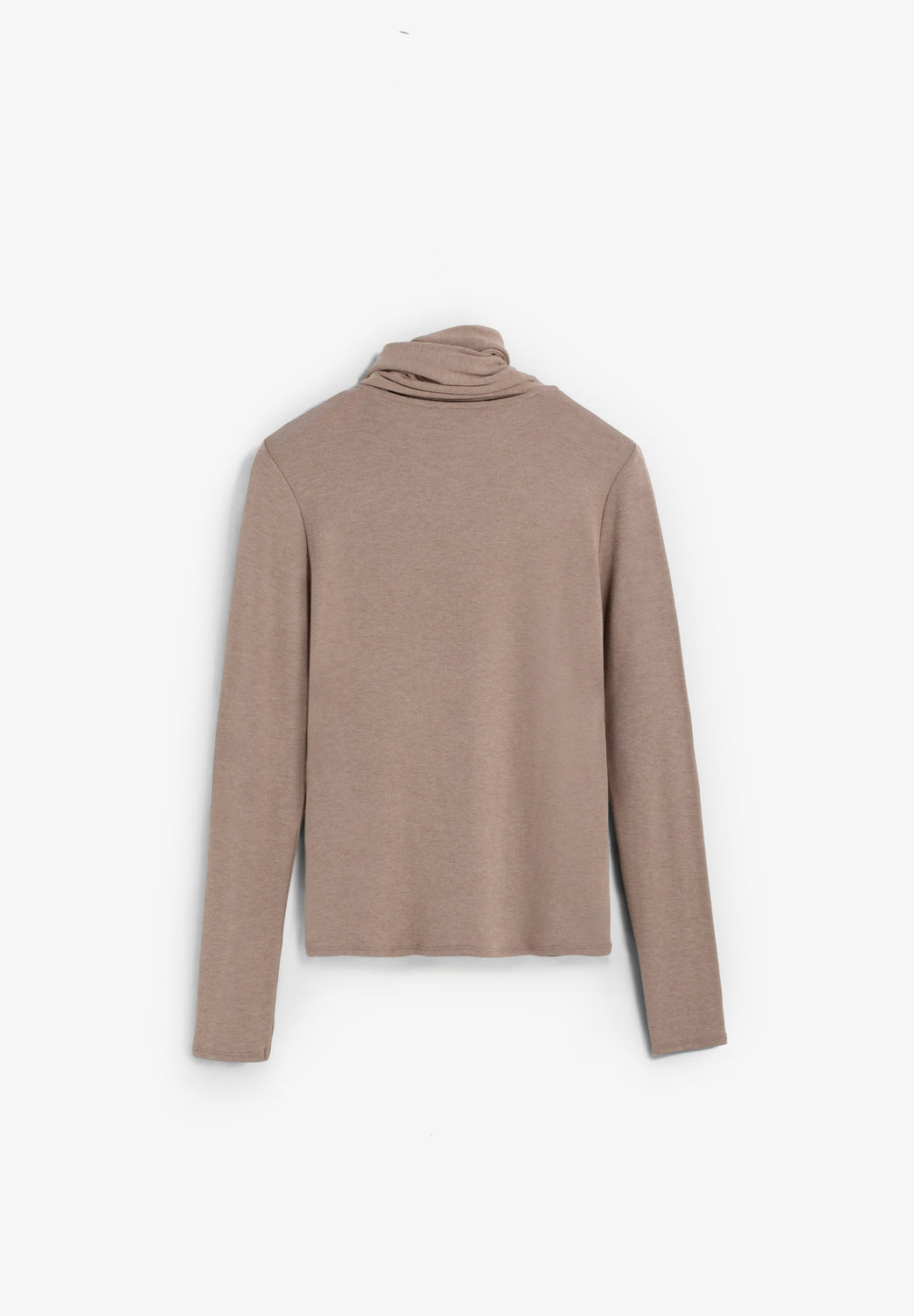 T-shirt with turn-down collar and scarf-style neck tie detail. Long sleeves. Slim fit.