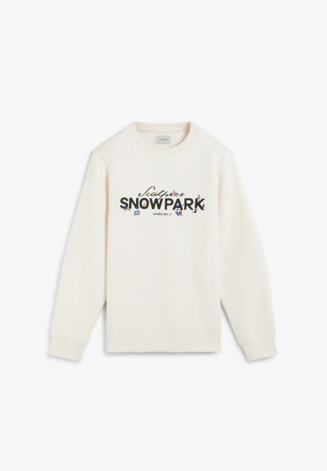 Sweatshirt made of 100% BCI cotton. Round neck with fleece lining. Regular fit, faded finish. Soft peached fabric. Central graphic on chest with embroidery and contrast print. Ribbed collar, cuffs and hem.