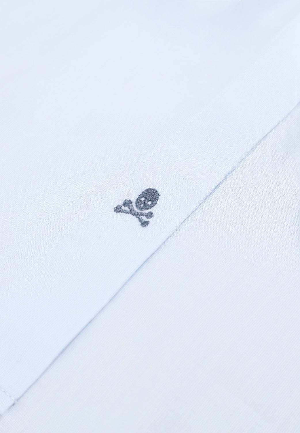 Shirt made of 100% organic BCI cotton. Long sleeves. Adjustable buttoned cuff. Embroidered logo. Front button fastening. Made in Portugal.