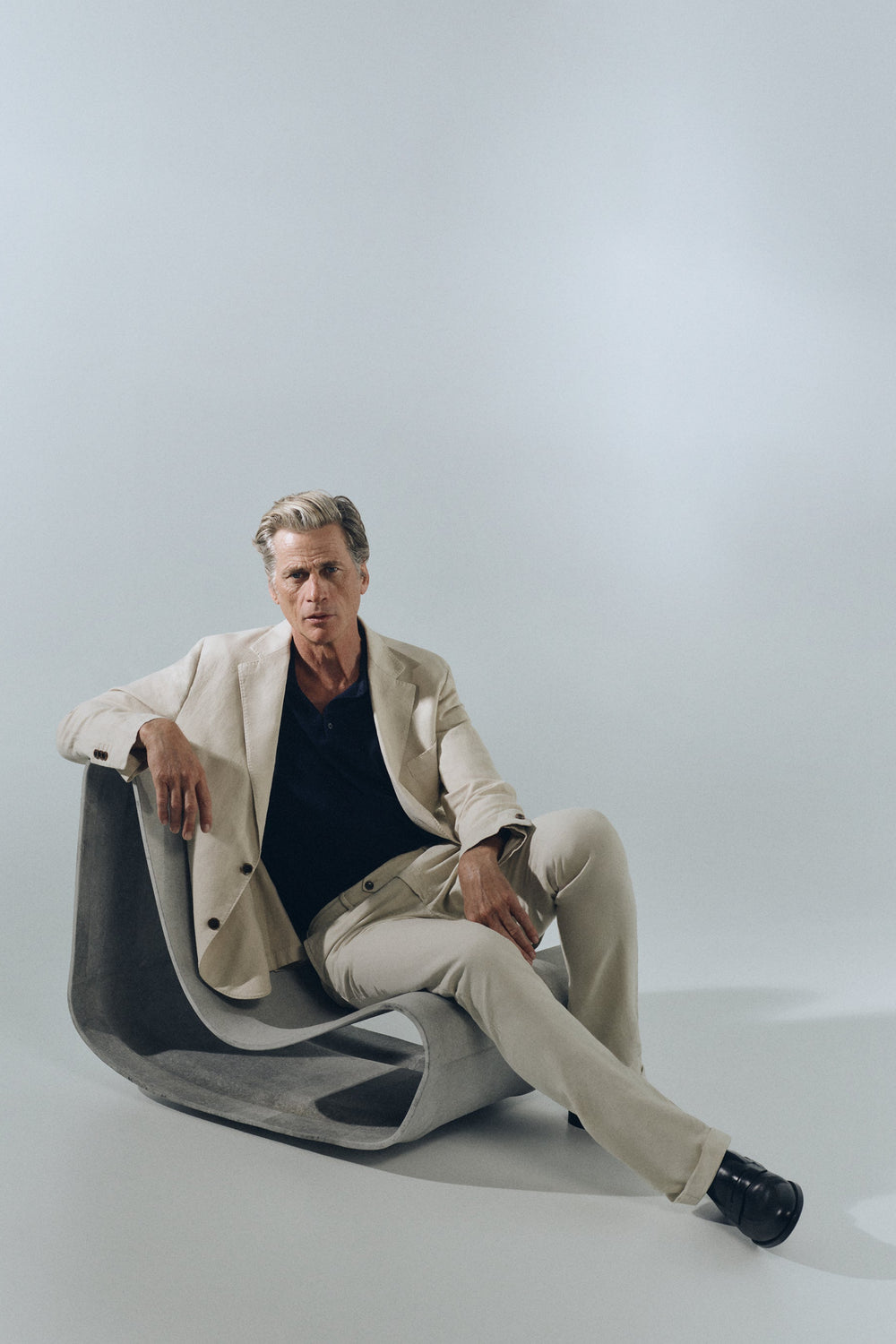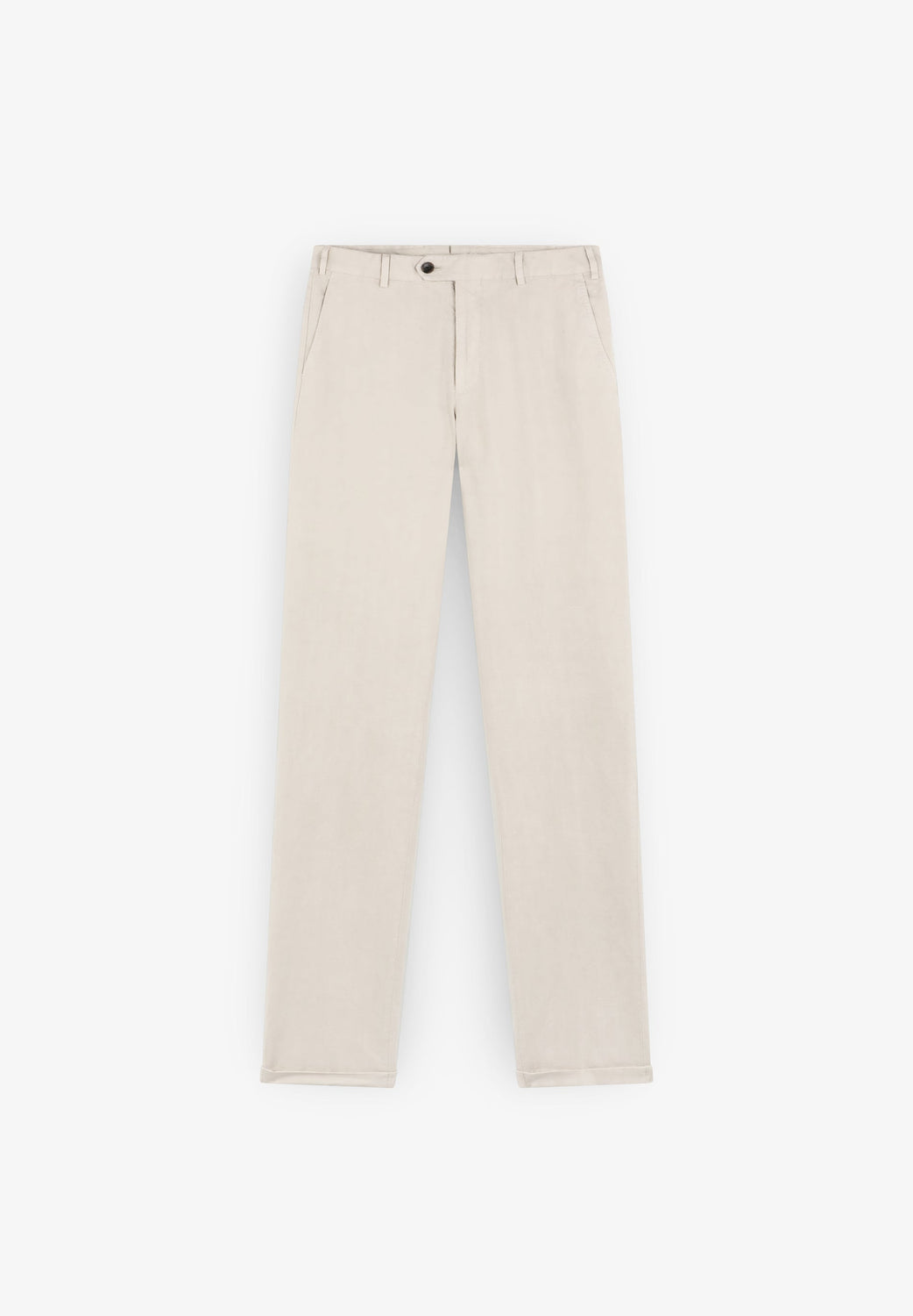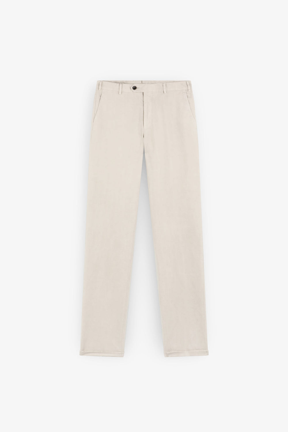 Suit trousers made of a cotton and linen blend. Zip fastening with an extended button at the waist. Front slanted and back pockets with button.