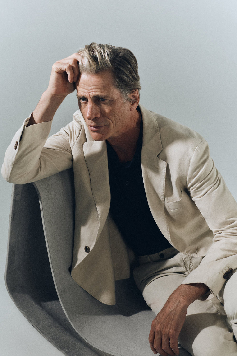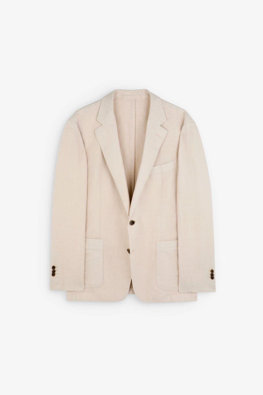 Lightweight blazer made of cotton and linen blend. Regular fit. Notched lapel collar. Button fastening. Long sleeves with buttons. Patch pockets.