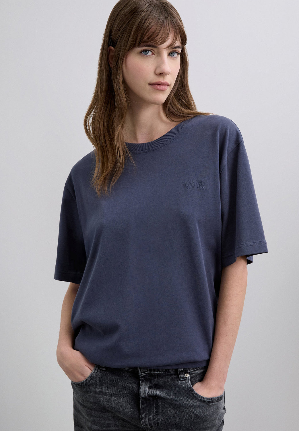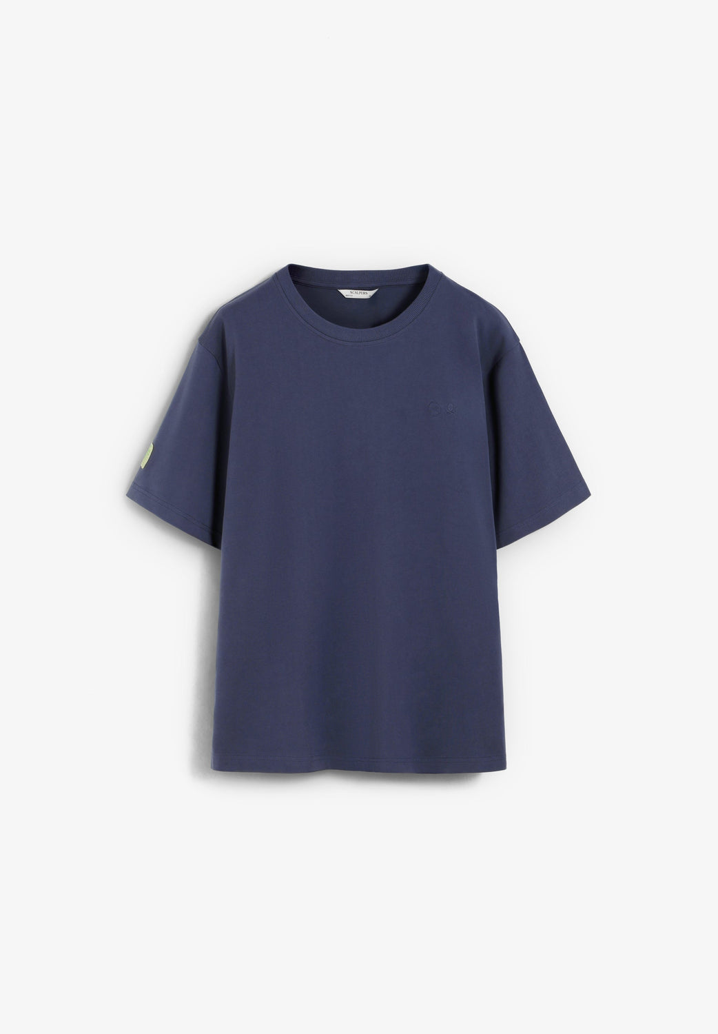 T-shirt made of 100% BCI cotton. Short sleeve. Round neck. Print on back. Tonal embroidery on the chest. Label detail on the right sleeve.