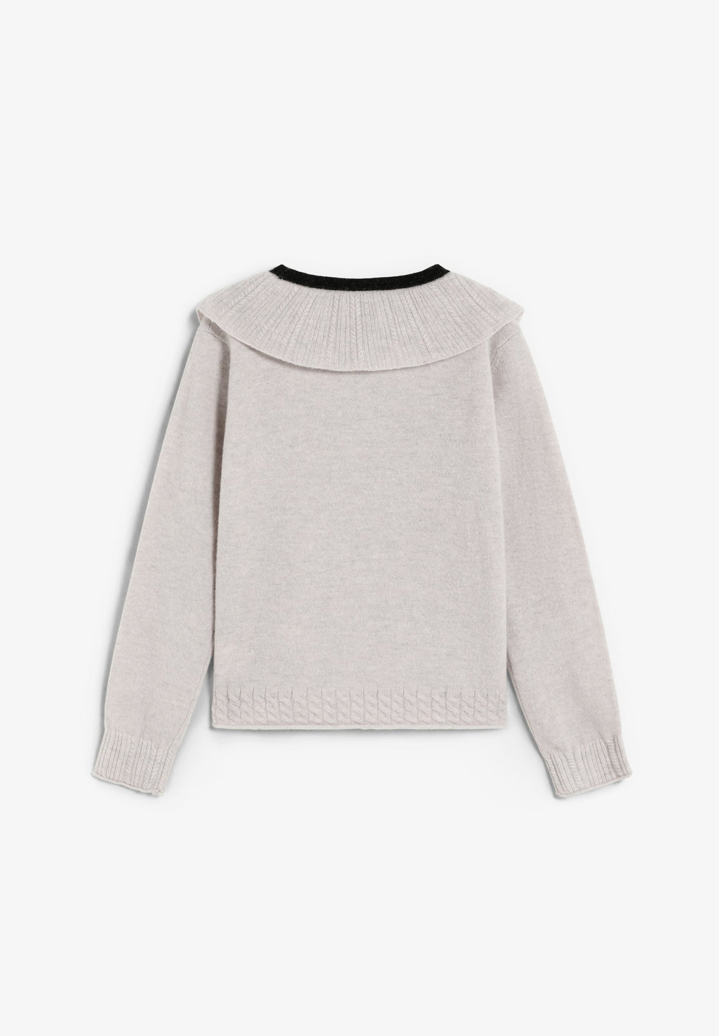 Knit sweater in a wool blend. Regular fit. Bib collar with contrast tie. Long sleeves with ribbed trim.