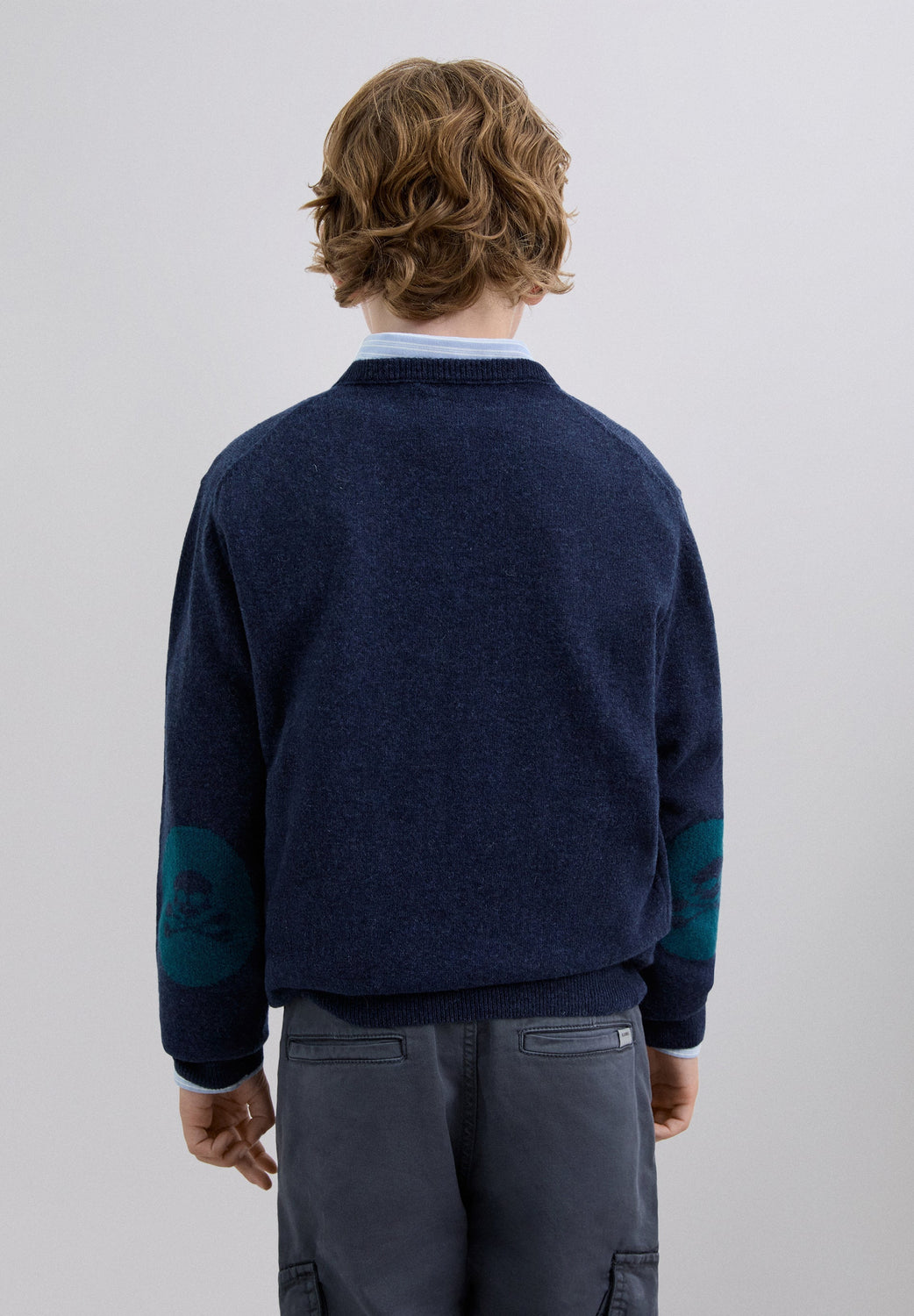 Sweater with contrast skull detail on the elbow pads. Made of a wool blend. Regular fit. Round neck. Long sleeves. Contrast skull on the chest