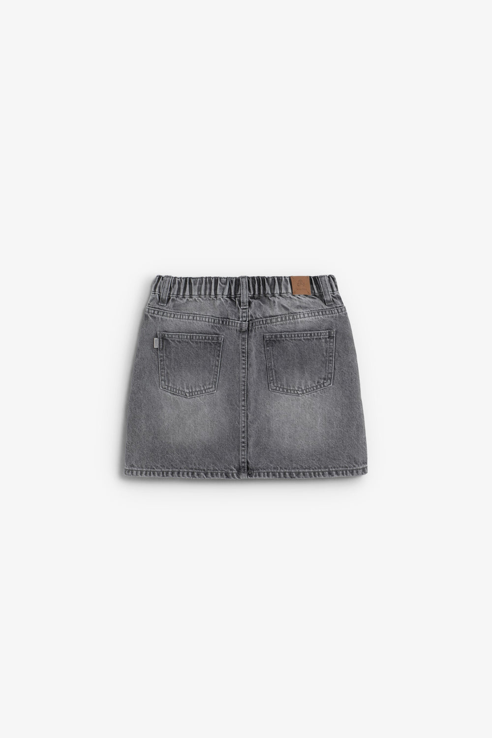Denim mini skirt made of 100% BCI cotton. Stud detail. Button and zip fastening. Belt loops at the waist. Two front pockets and back pockets.