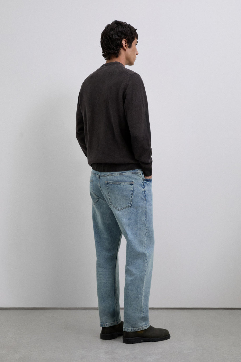 Jeans made of slightly stretchy BCI cotton. Regular fit, button and zip fastening and side and back pockets. Belt loops at the waist.