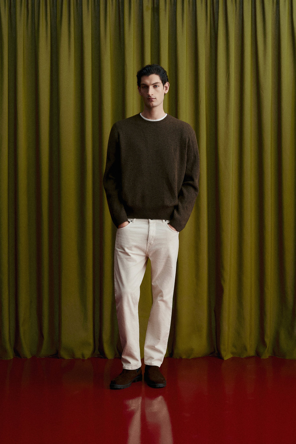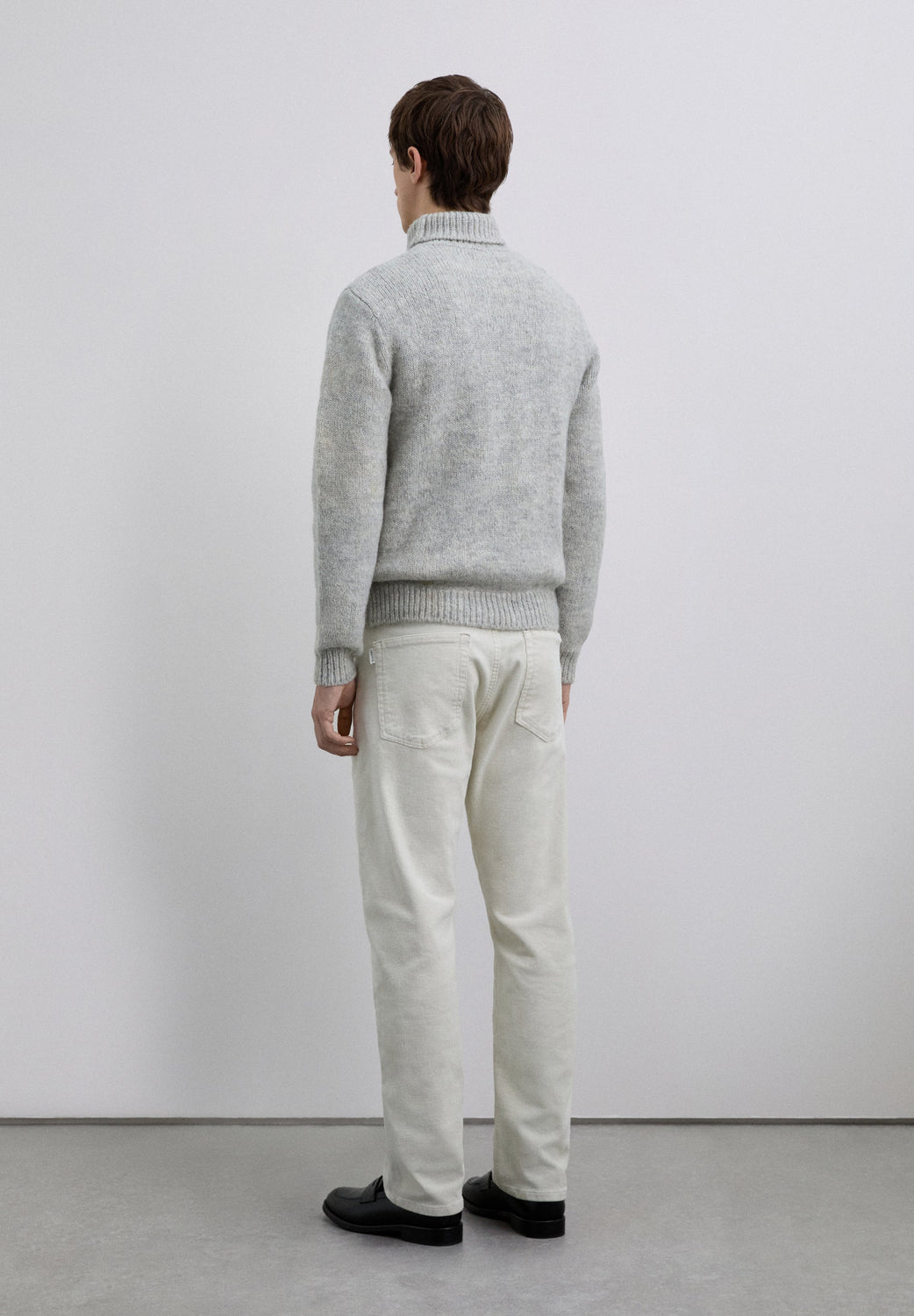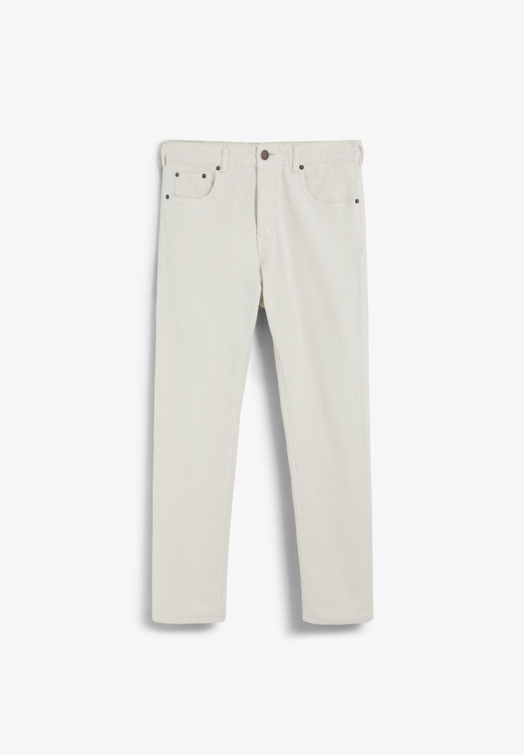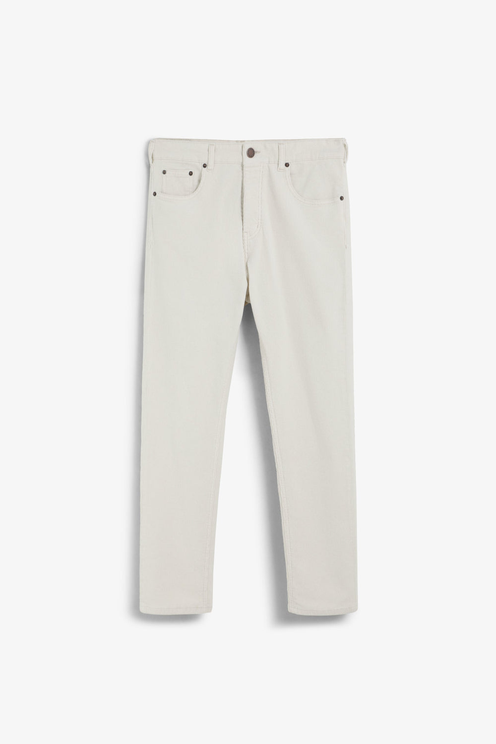 Cotton corduroy trousers. Cropped fit. Front zip and button fastening. Side and back pockets. Belt loops at the waist. Logo detail on the back waistband.