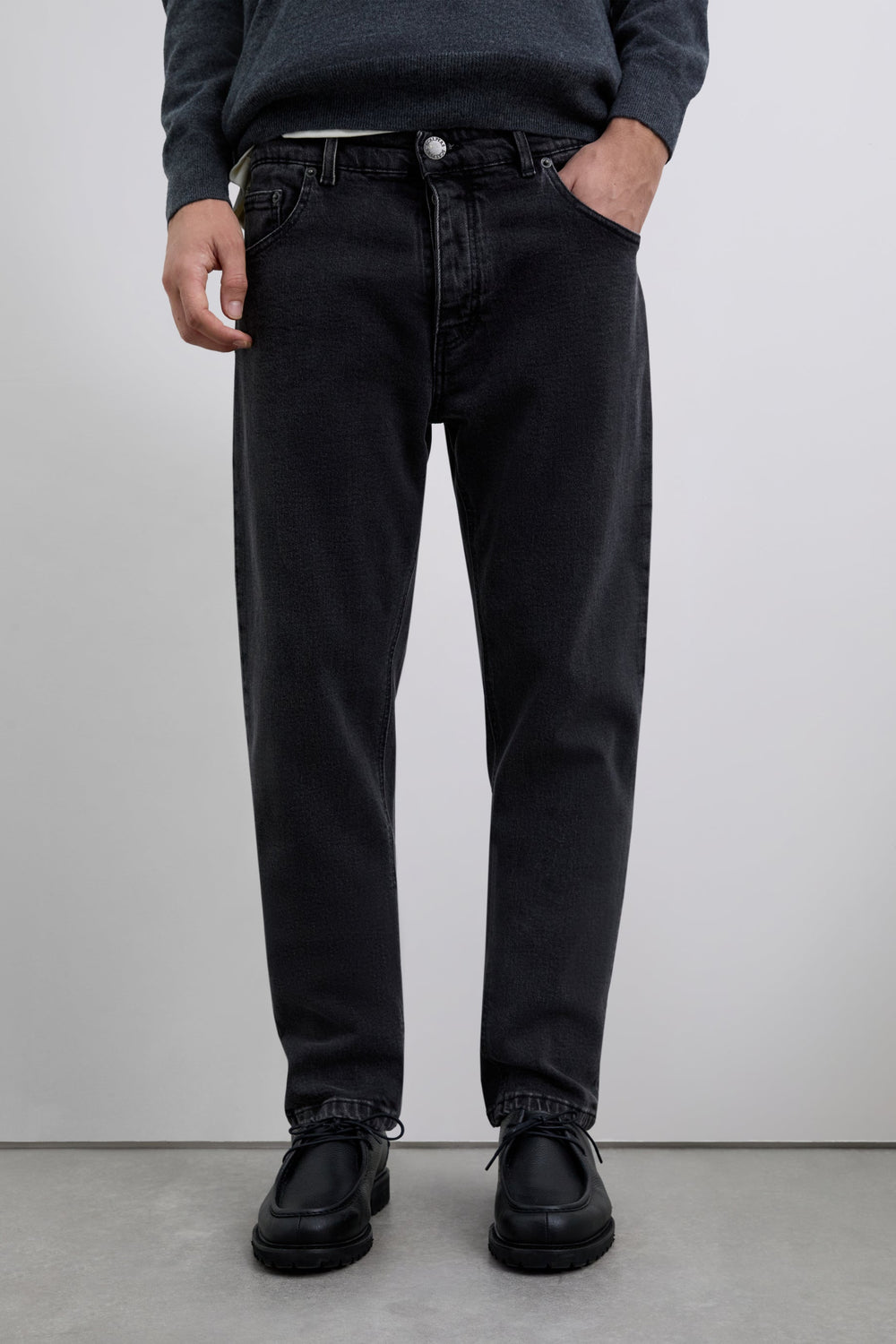 Denim trousers made of 100% cotton. Slim fit, button and zip fastening and side and back pockets. Belt loops at the waist. Logo detail on the pocket.