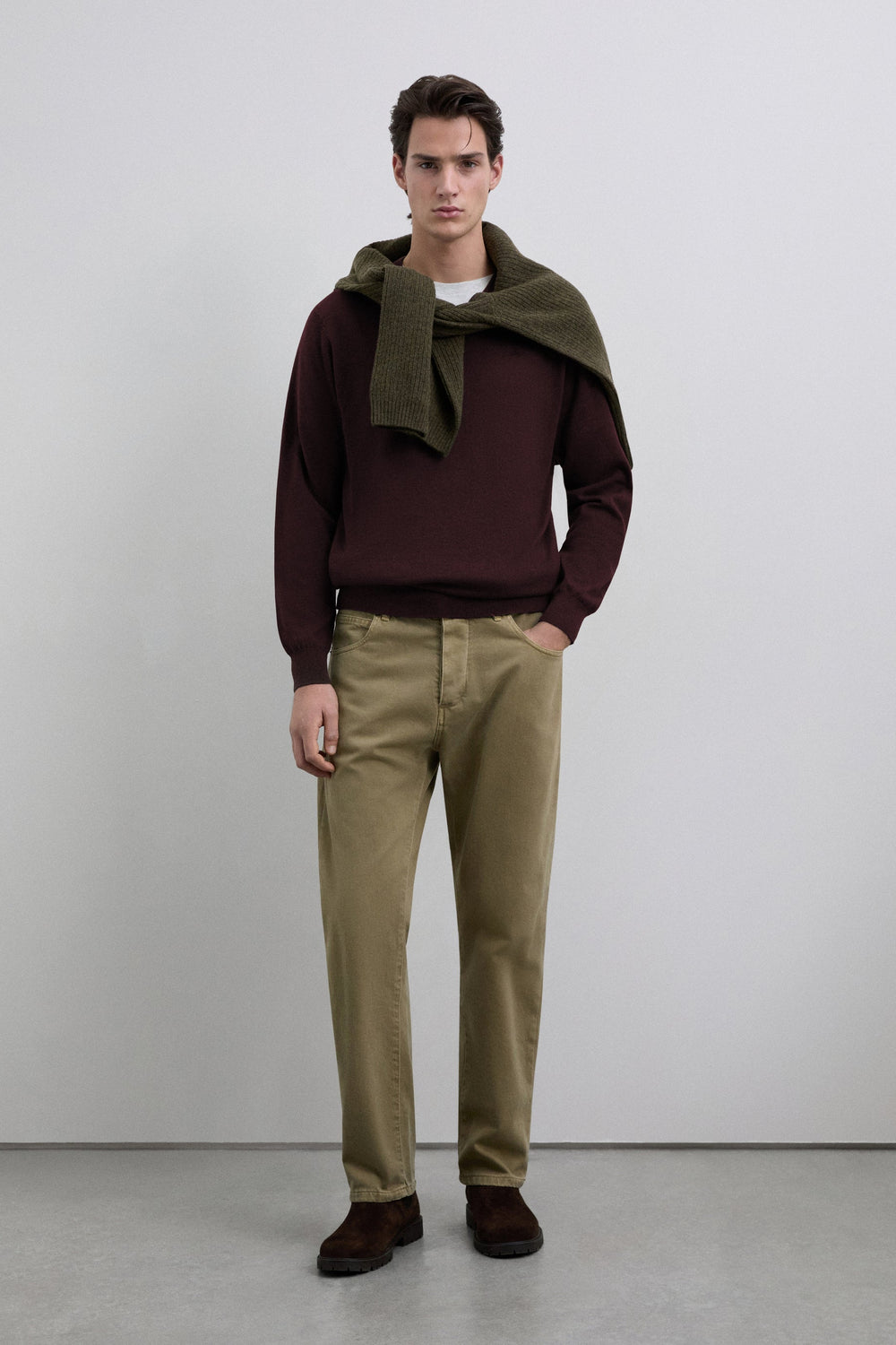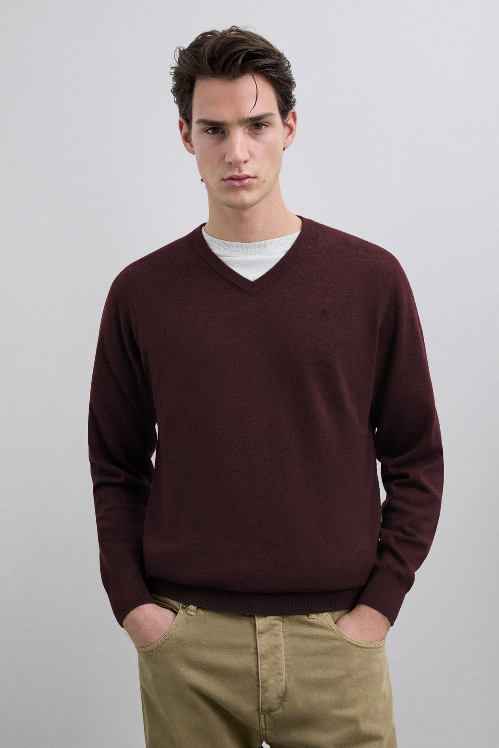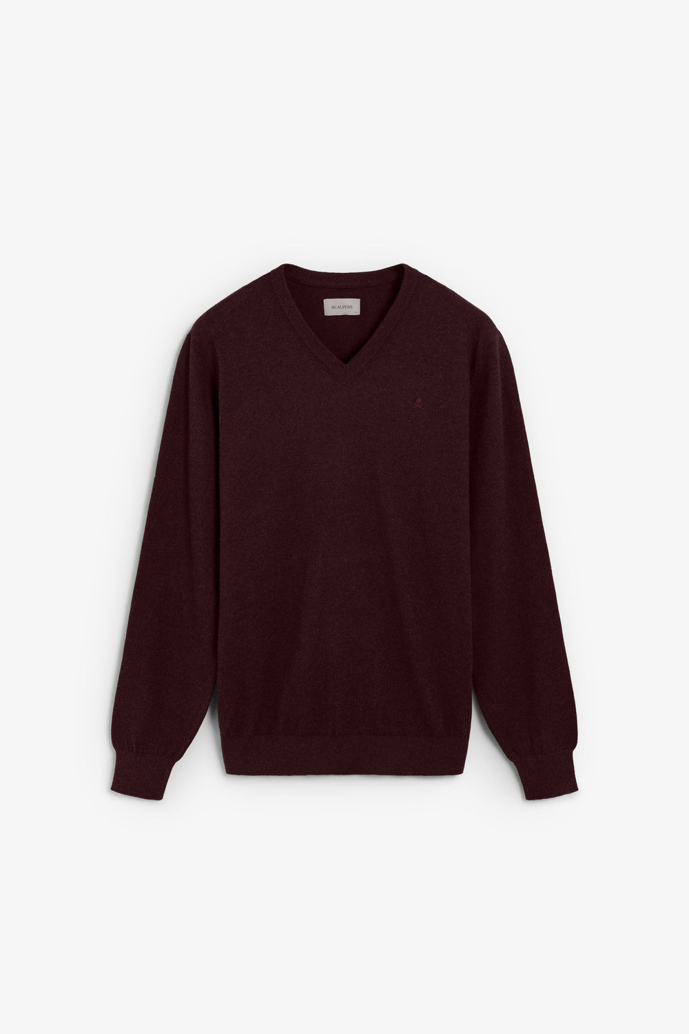 Sweater made of cotton. Regular fit. V-neck. Long sleeves. Ribbed cuffs and waistband. Matching embroidered skull detail on the chest.