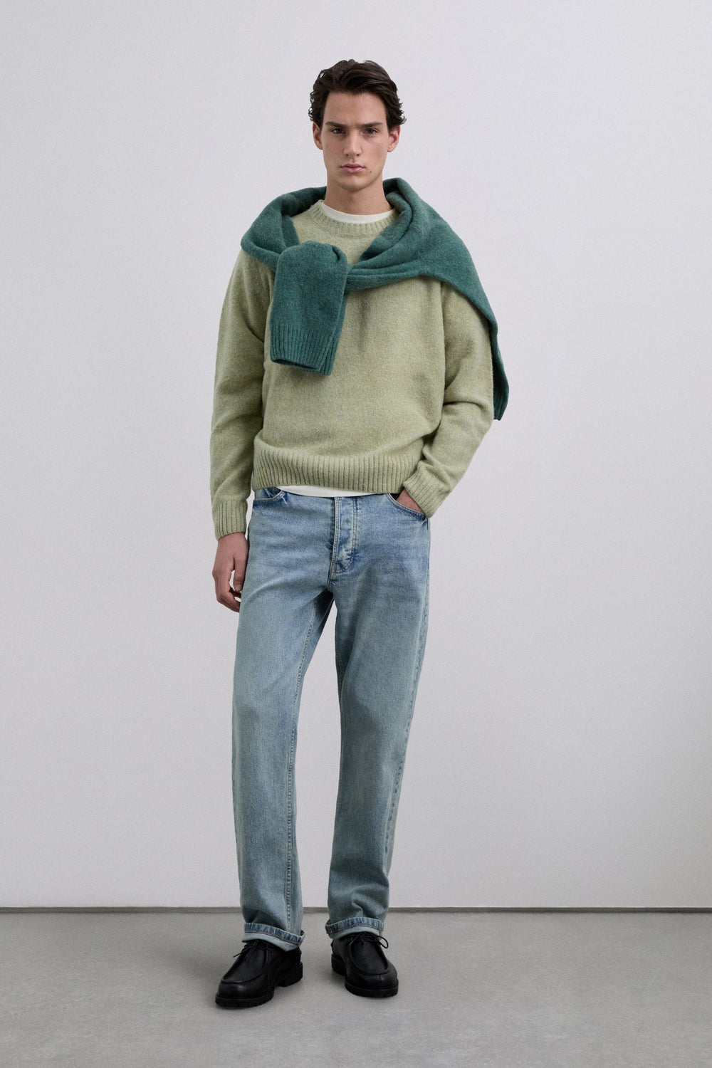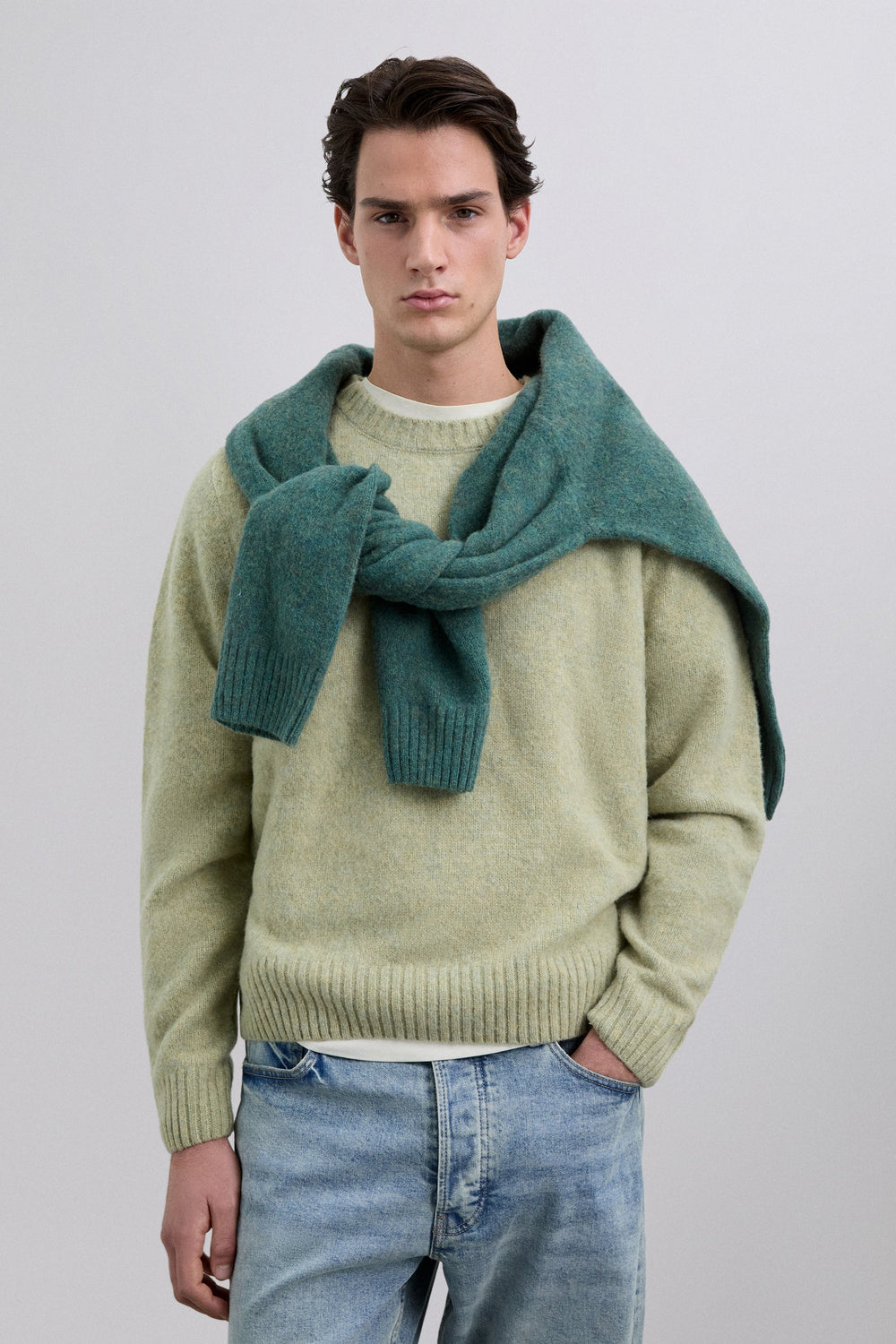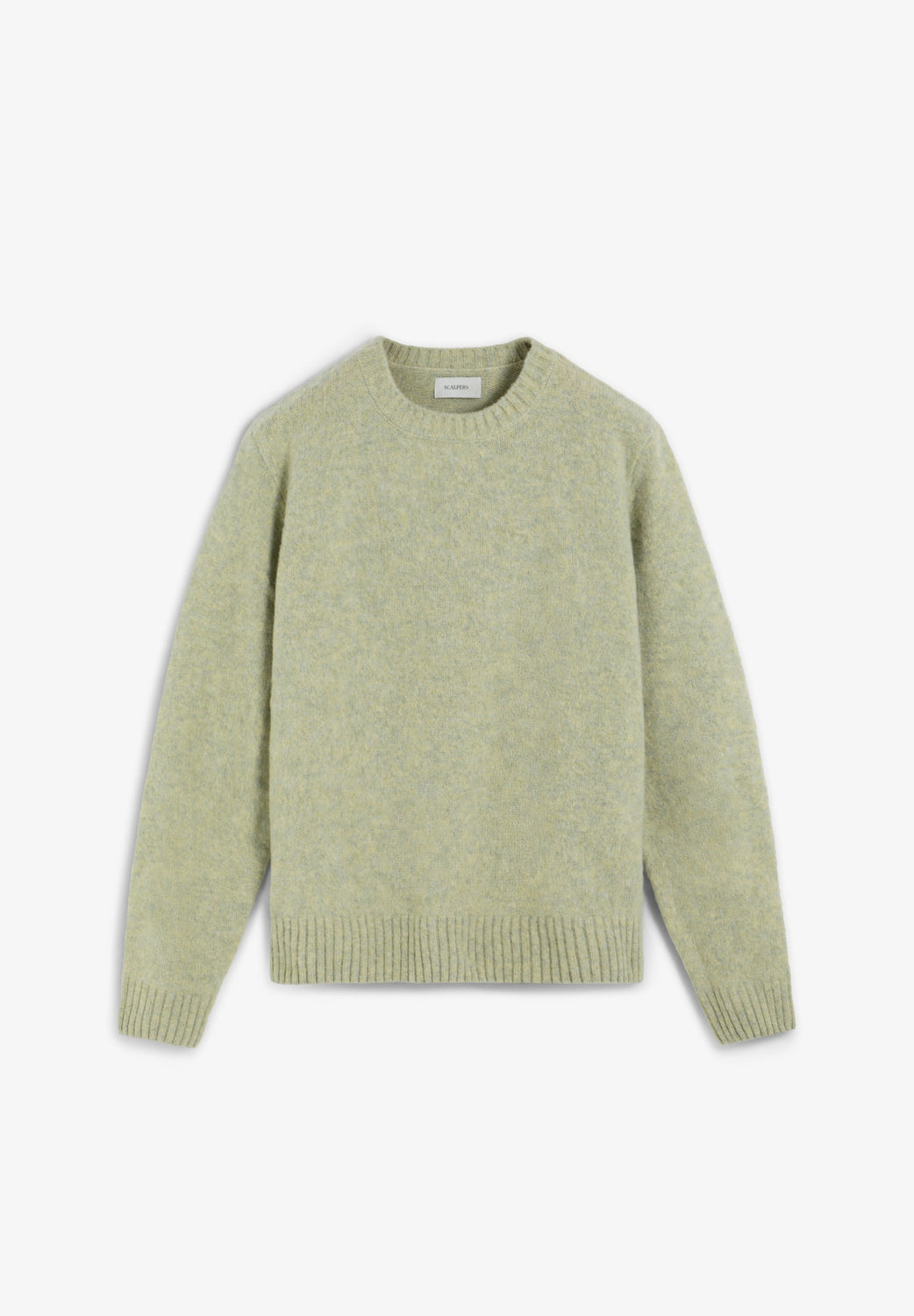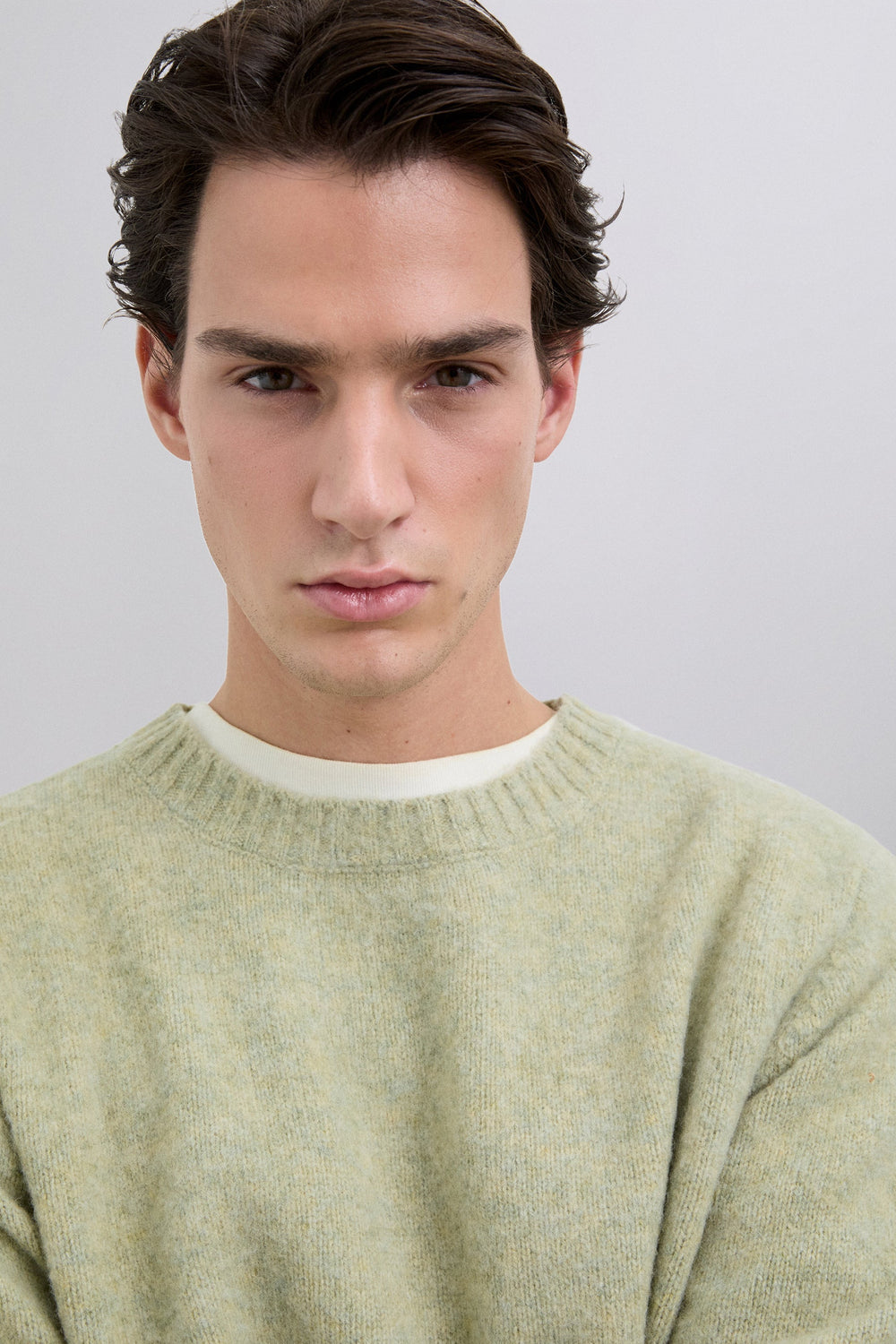 Sweater made of 100% wool. Brushed effect. Round neck. Long sleeves. Regular fit. Ribbed trim.