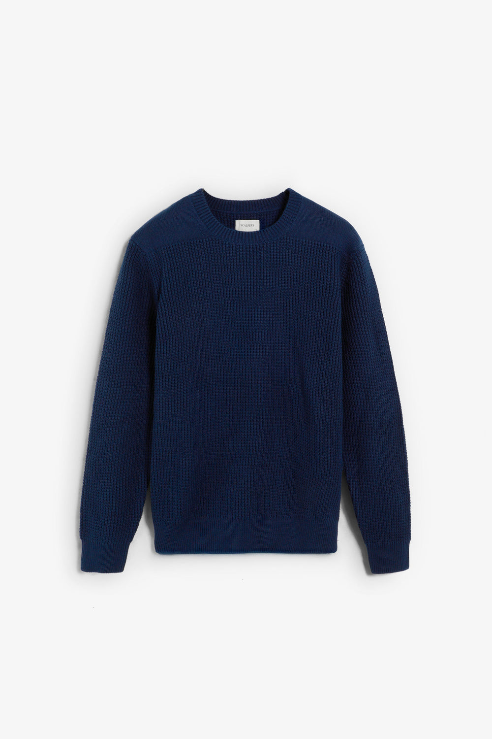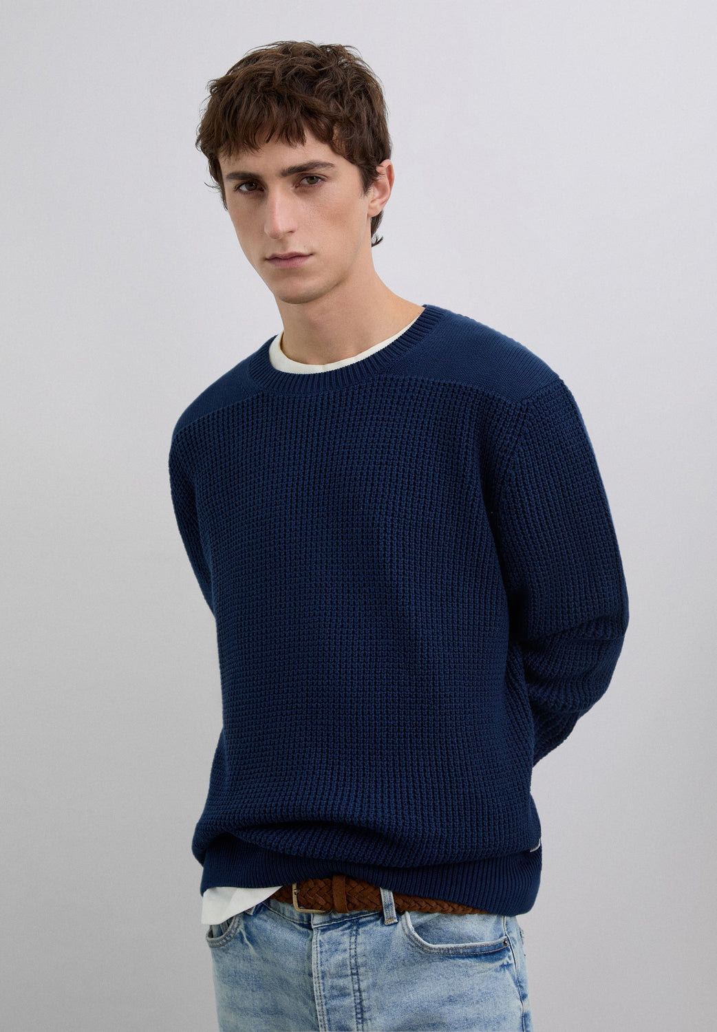 Textured sweater made of 100% BCI cotton. Regular Fit. Round neck. Long sleeves. Logo label detail on inside.