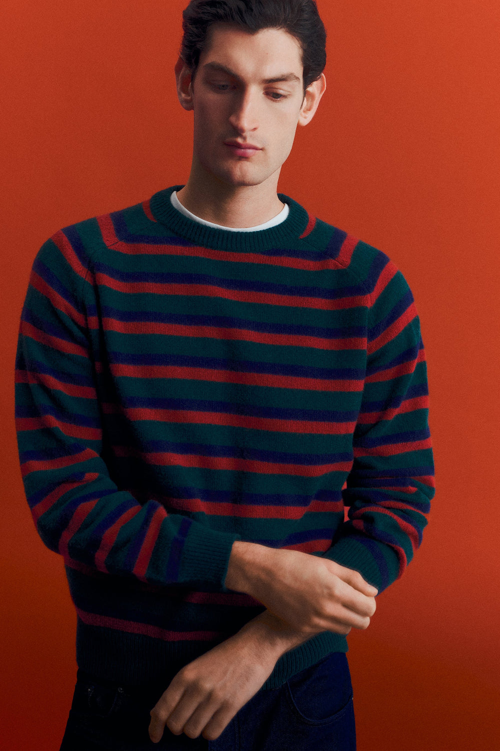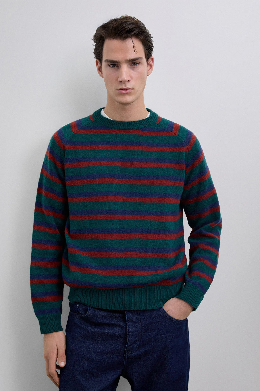 Sweater made of wool. Stripe print. Regular Fit. Round neck. Long sleeves. Ribbed trim.