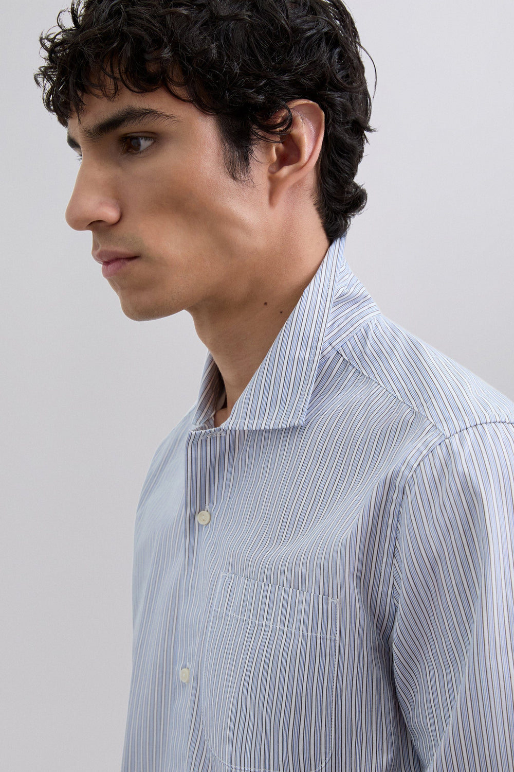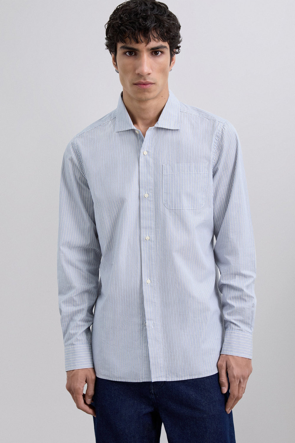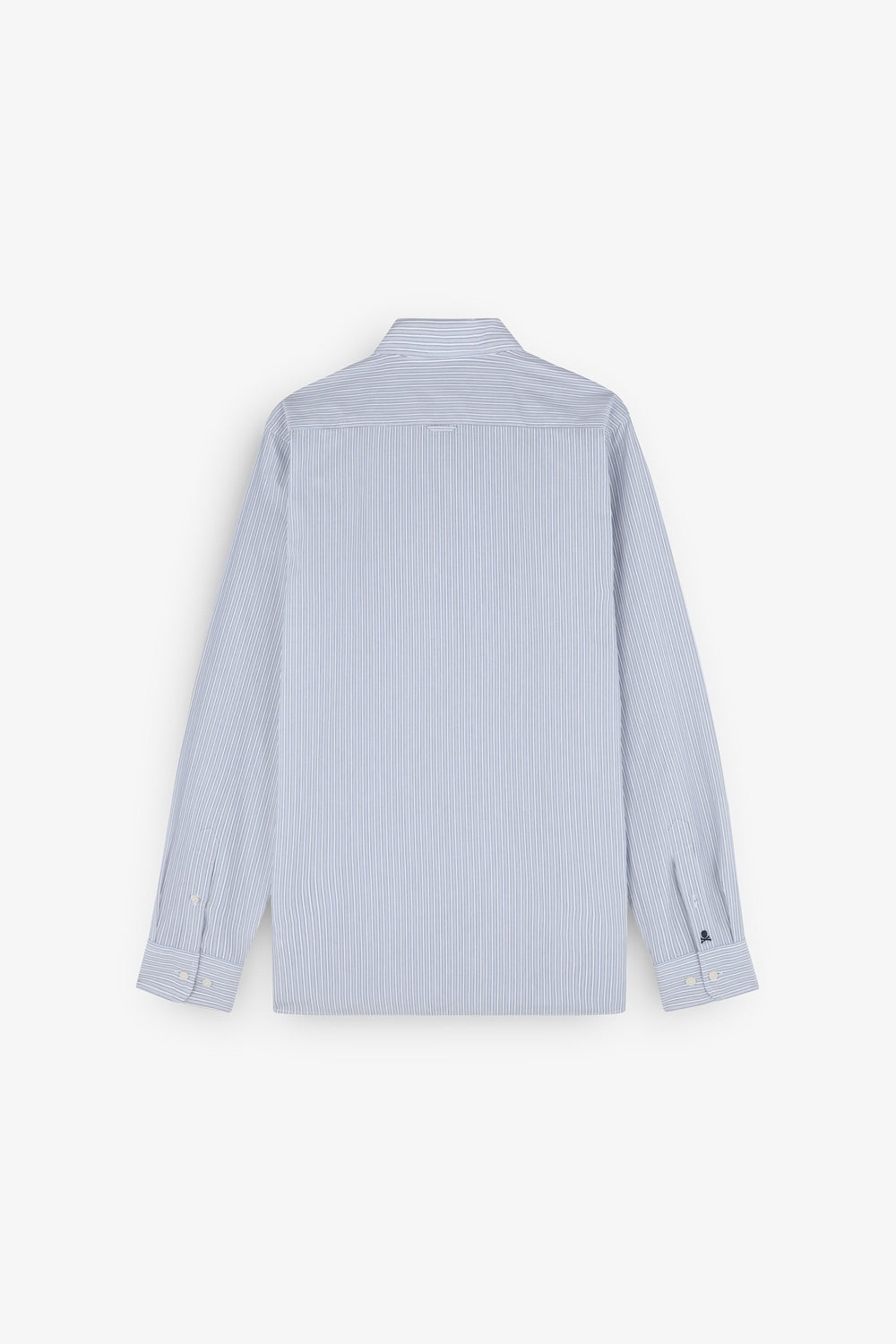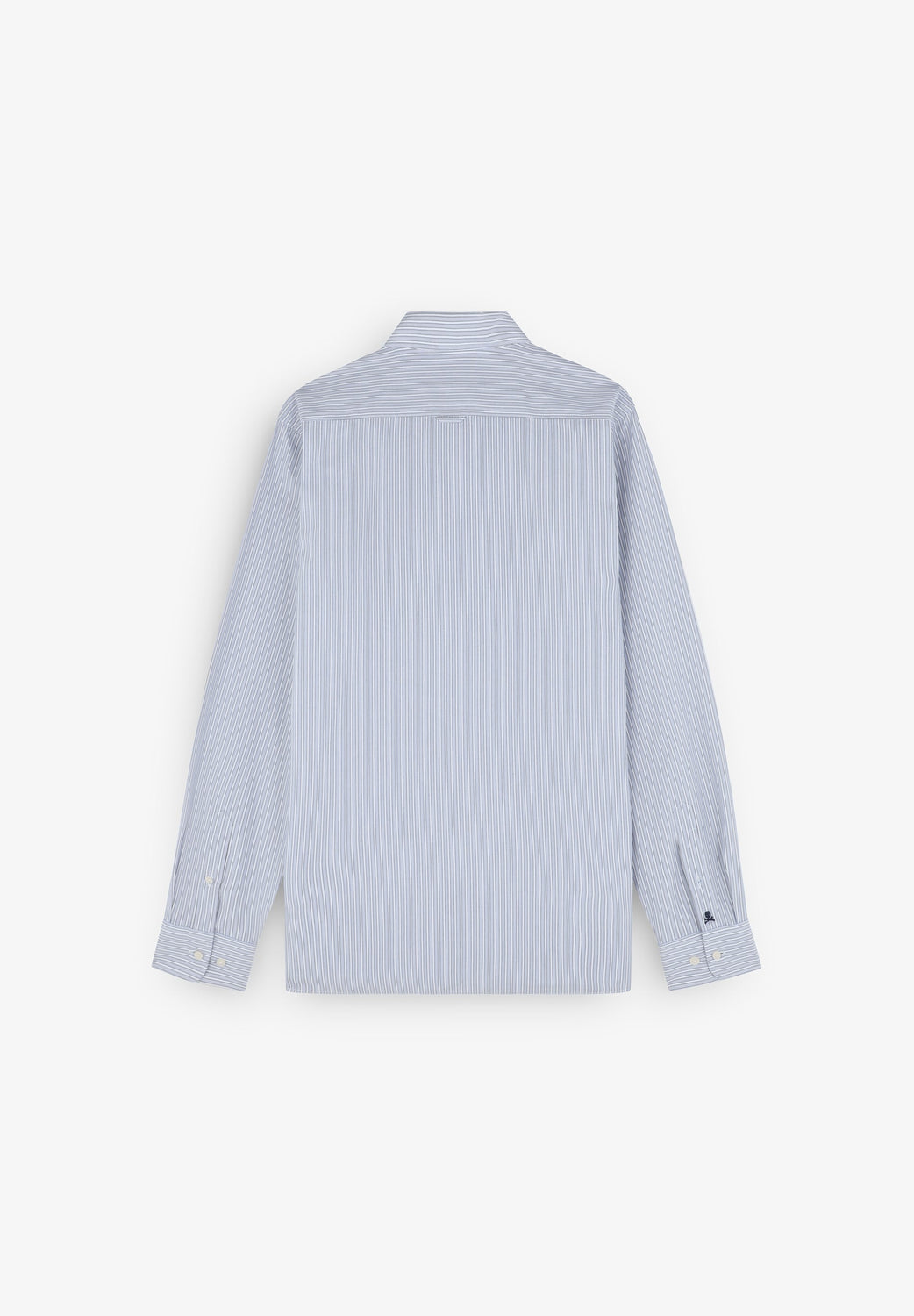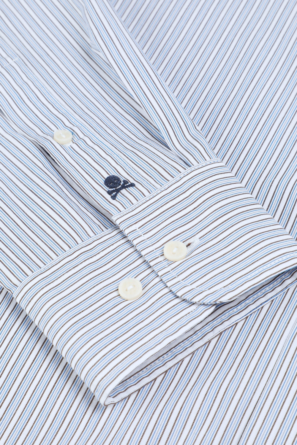 Shirt made of 100% BCI cotton. Long sleeves. Stripe print. Chest pocket. Contrast embroidered skull detail on the cuff.