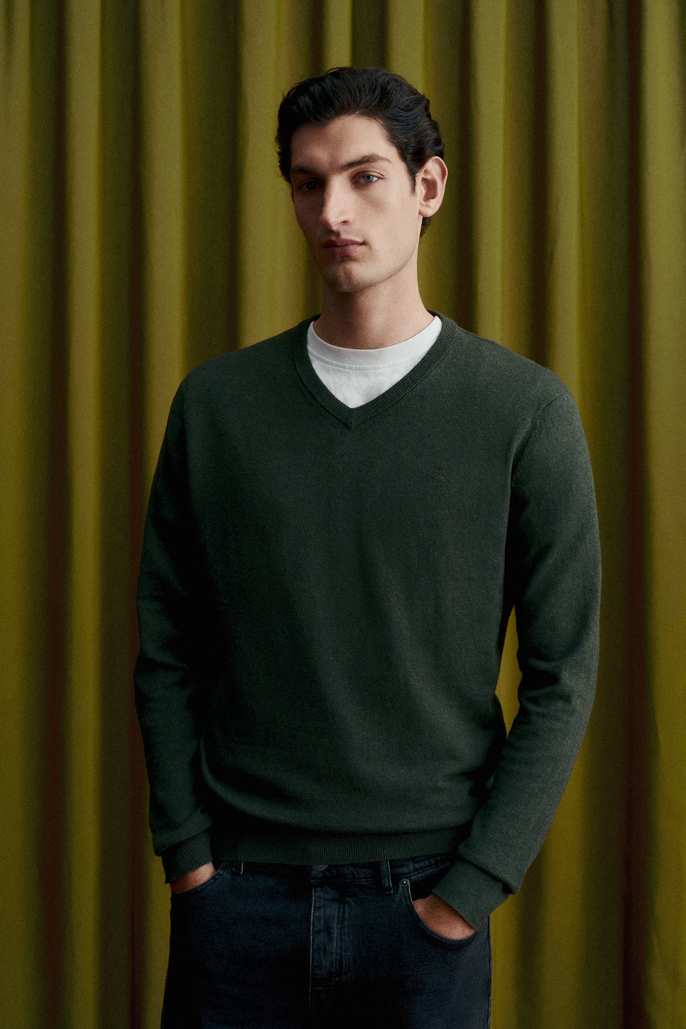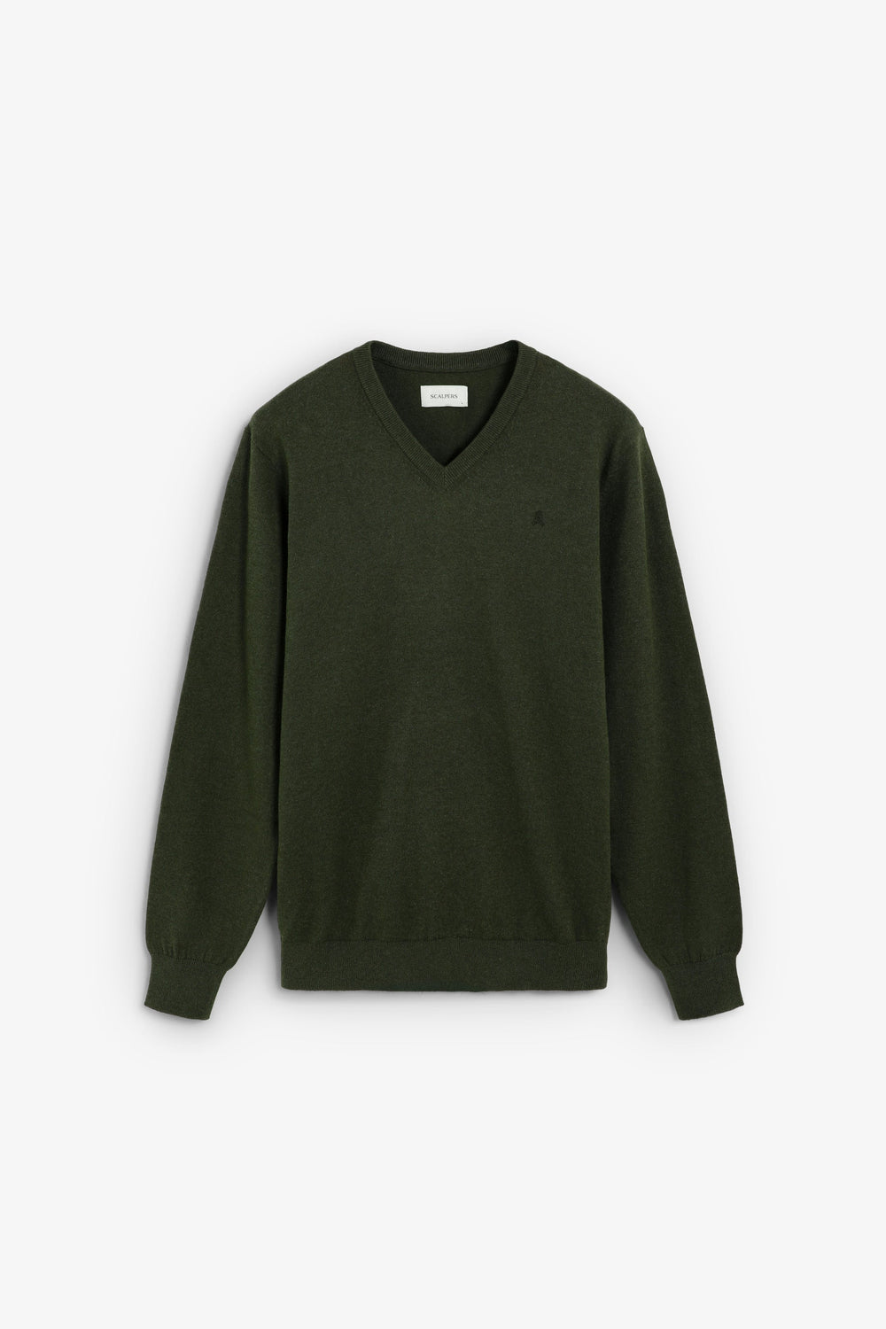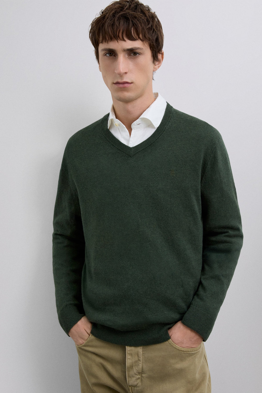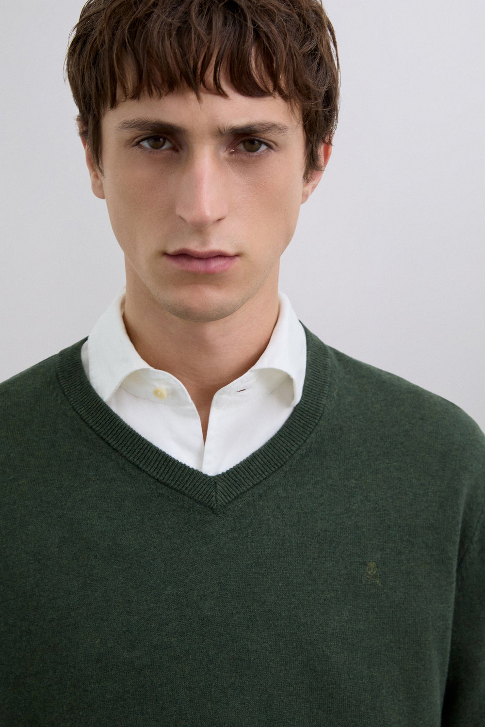 Sweater made of cotton and cashmere. Regular fit. V-neck. Long sleeves. Ribbed trim.