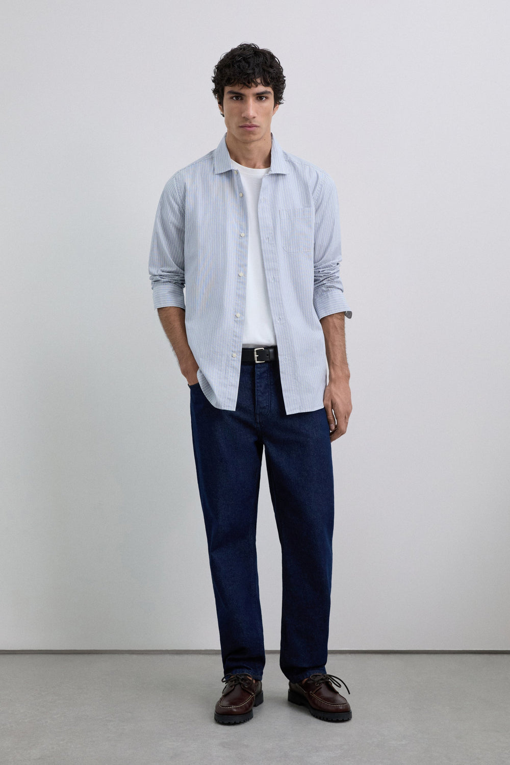 Jeans made of a cotton blend. Cropped fit, top button and zip fly fastening and side and back pockets. Belt loops at the waist.
