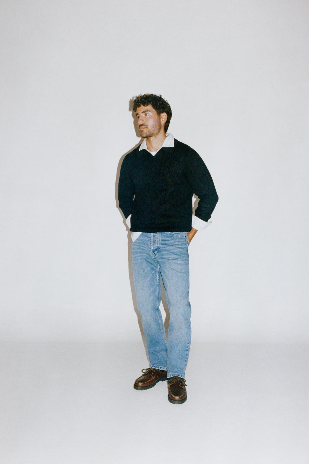 Jeans made of slightly stretchy BCI cotton. Regular fit, button and zip fastening and side and back pockets. Belt loops at the waist.