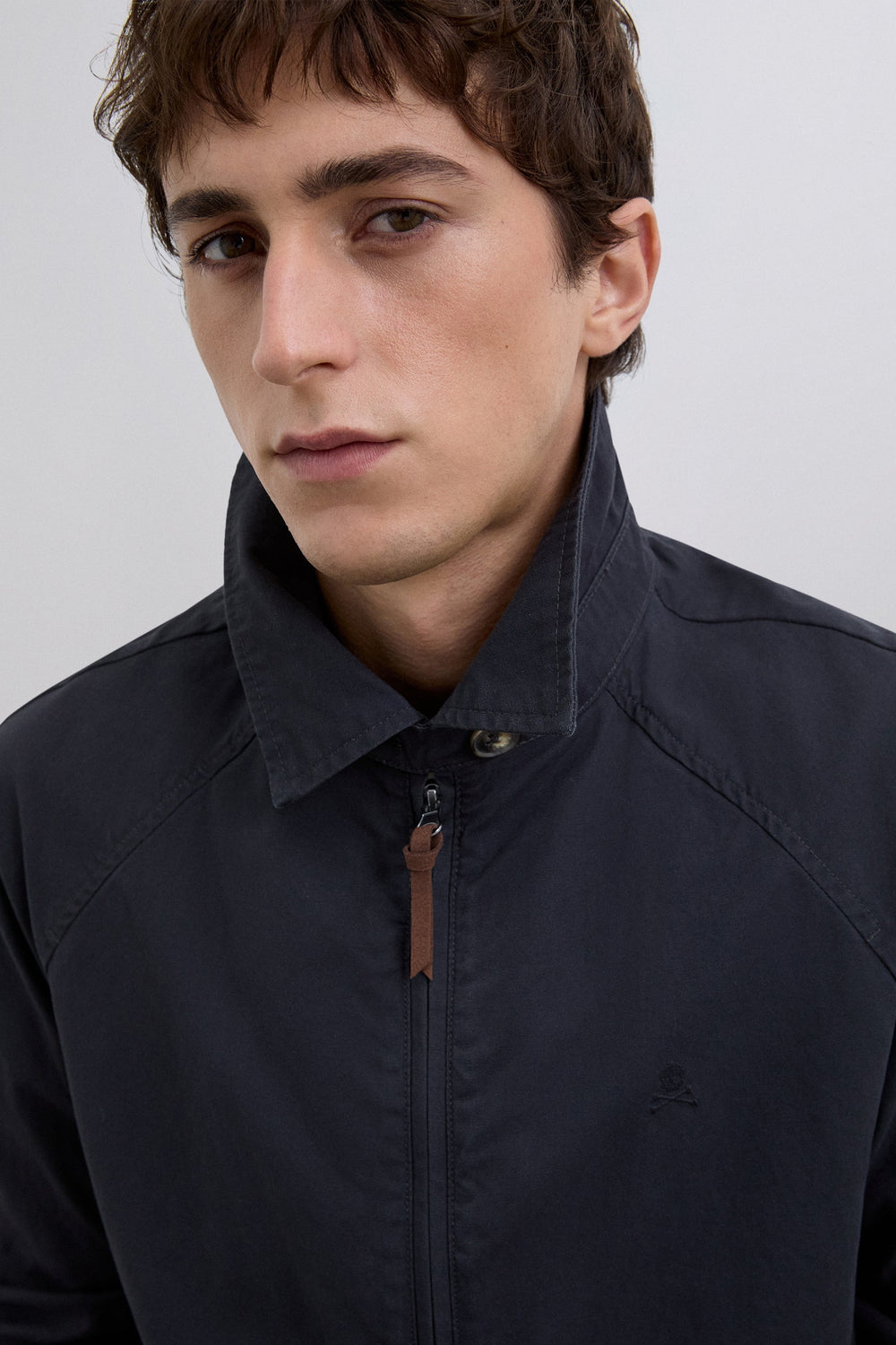 Bomber jacket made of 100% BCI cotton. Fitted. Two-way zip. Ribbed collar, cuffs and waistband. Two front pockets. 100% BCI cotton lining. Embroidered logo.