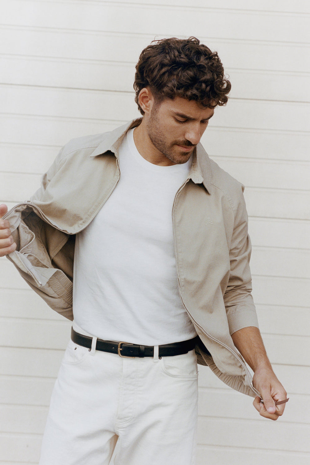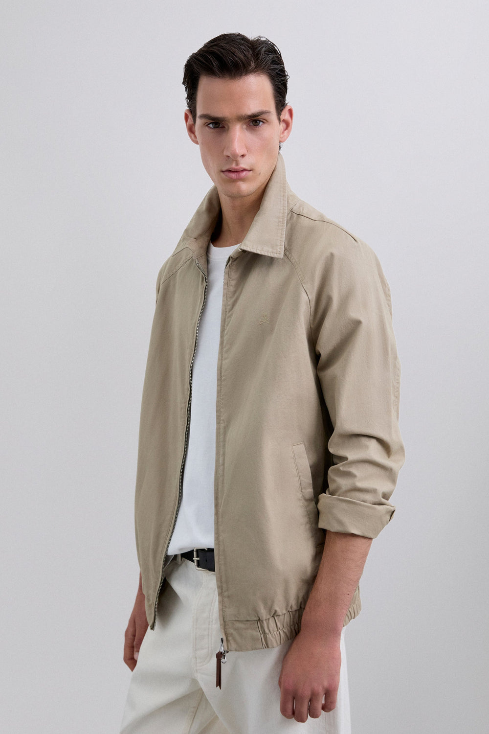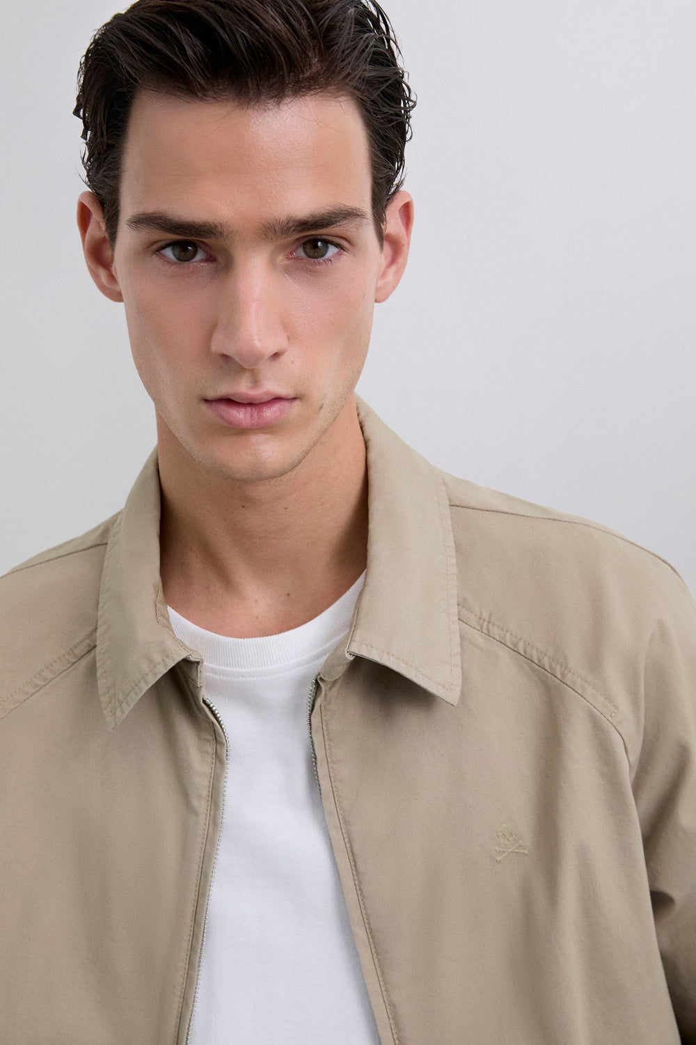 Bomber jacket made of 100% BCI cotton. Lined. Regular fit. Two-way zip. Two front pockets. Adjustable buttoned cuffs. Slightly stretchy waist. Matching embroidered skull.